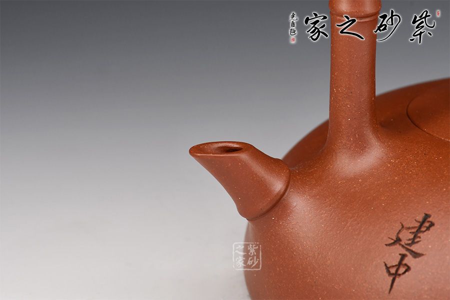壺身飽滿圓潤,柱鈕一節(jié)竹竿挺拔,修長而精致,嵌蓋嚴絲合縫,與壺身渾然一體。直嘴、提梁皆有竹元素。整個壺線條流暢,不凝不滯。氣勢大度,氣場不俗。壺身嚴謹敦實,但見端莊肅穆,爽利的線條將壺身勾勒得極度精致而不覺沉重,盡現典雅之美??汤L又增添了文人之氣,愛竹又愛紫砂的朋友不可錯過!