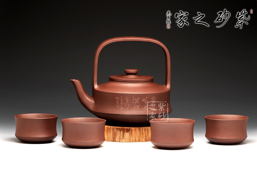 提壁套壺,規(guī)整齊全的搭配,有金玉滿堂的祝福之意,也有四世同堂的遐想。紫砂一整套,易于把玩觀賞,也為飲茶休閑,打開了方便實用之門。