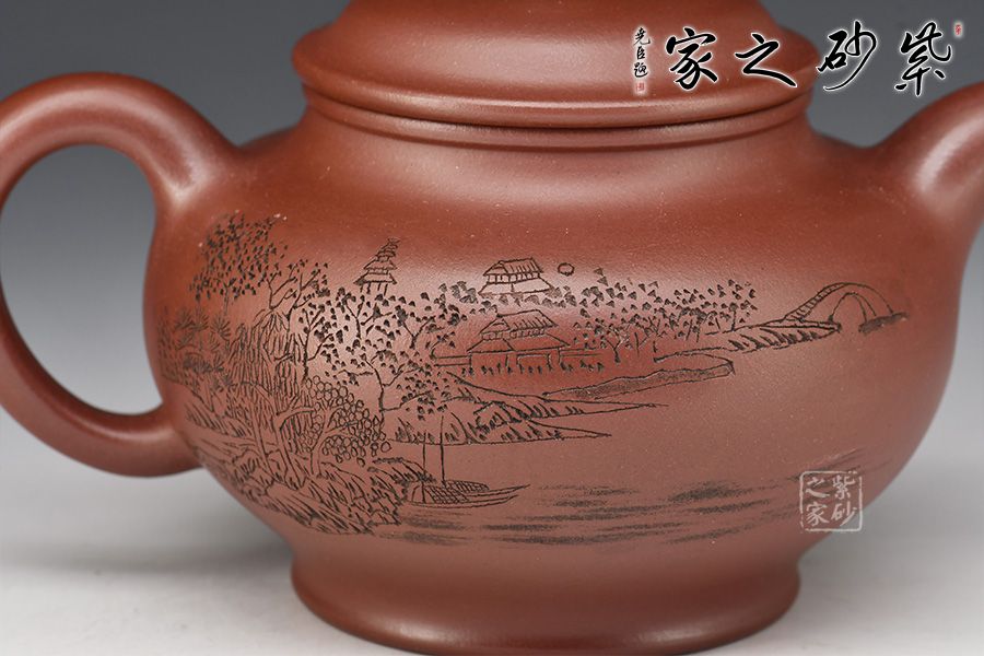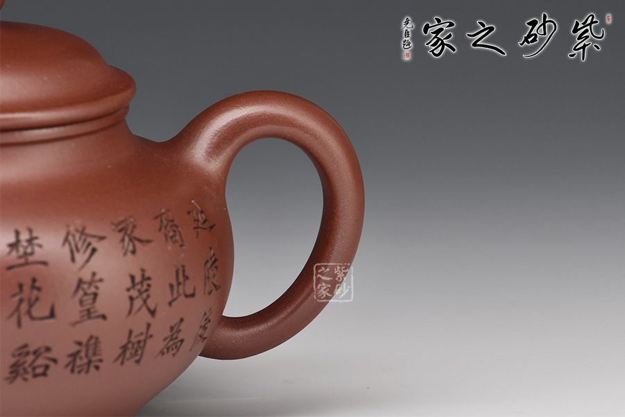 掇只壺是一款經(jīng)典紫砂壺,壺人們?nèi)耸忠话?。渾圓的壺身,半圓的壺蓋,略扁的圓鈕,線條流暢,比例得當(dāng),壓蓋略微渾厚,點(diǎn)線之間盡顯魅力,子母線口蓋溫和嚴(yán)密,骨肉亭勻,簡(jiǎn)練大方,制作頗見(jiàn)功力;一彎流嘴胥出,在端頭下壓,柔美之姿明顯,壺柄略微上抬之后優(yōu)雅滑落而下,形成一 條圓潤(rùn)飽滿的弧線,樸雅大方,加底設(shè)計(jì)將壺身襯托得更加亭亭玉立。又加之刻繪裝飾,文人氣息十足,推薦收藏!
