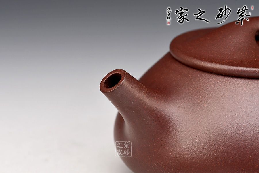 此壺以景舟石瓢為型,壺體豐潤飽滿,曲線柔和流暢,平壓蓋、橋鈕,拿取自如,直流簡而有力,出水順暢,圈把比例和諧,提攜舒適。整體力道、氣韻、比例皆拿捏得恰到好處,泡養(yǎng)效果極佳,實為一把好料精工、高性價比的石瓢佳作。