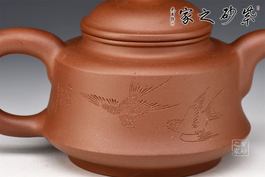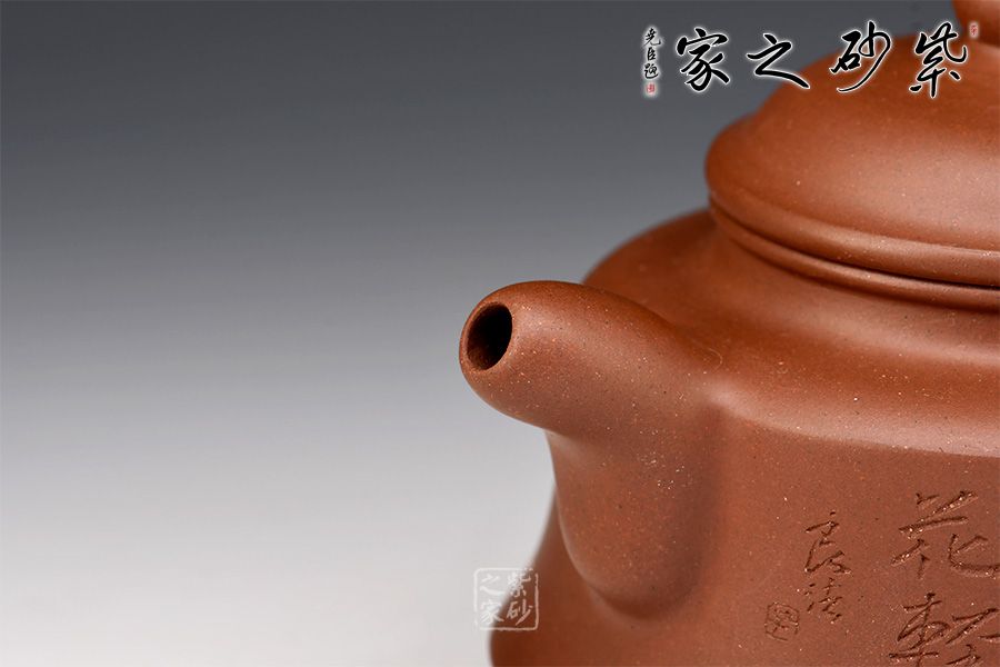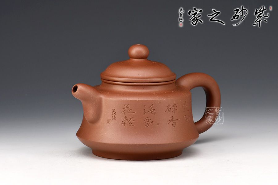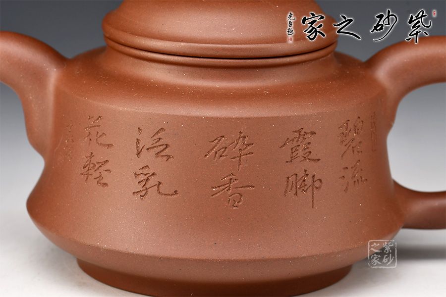 光貨離不開裝飾。俗話說“壺隨字貴,字隨壺傳”:光壺不刻字,就是一把光壺;壺上面刻了大師、名人的字,一把壺的含金量就高了,收藏價值就更高,升值潛力就更大。王福君與中國工藝美術(shù)大師譚泉海合作最多,其次是徐安碧、鮑志強(qiáng)、毛國強(qiáng)(均為中國工藝美術(shù)大師、中國陶瓷藝術(shù)大師)。
