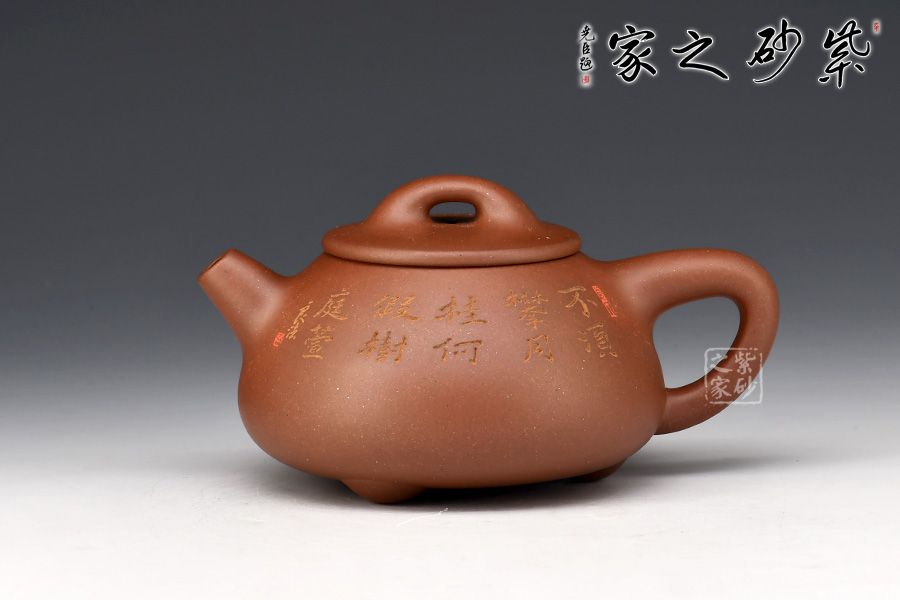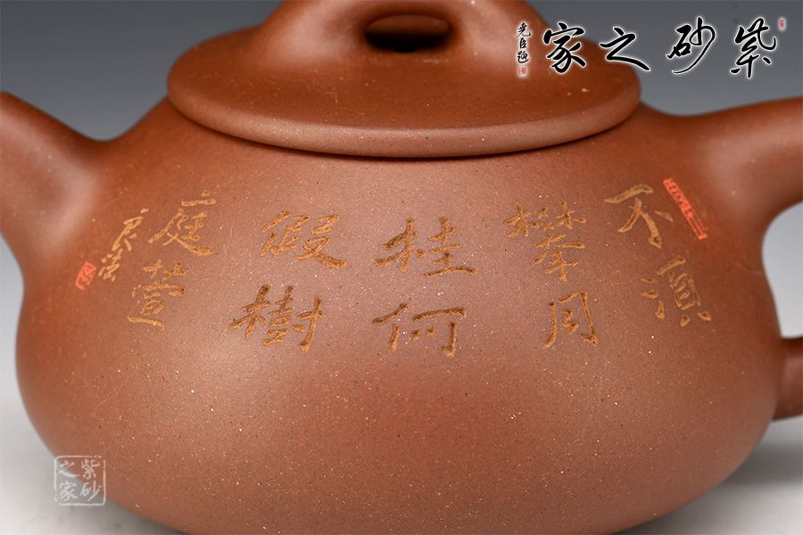 光貨離不開裝飾。俗話說“壺隨字貴,字隨壺傳”:光壺不刻字,就是一把光壺;壺上面刻了大師、名人的字,一把壺的含金量就高了,收藏價值就更高,升值潛力就更大。王福君與中國工藝美術(shù)大師譚泉海合作最多,其次是徐安碧、鮑志強、毛國強(均為中國工藝美術(shù)大師、中國陶瓷藝術(shù)大師)。
