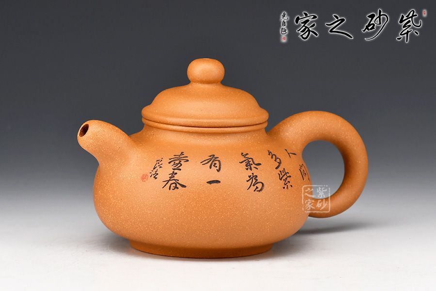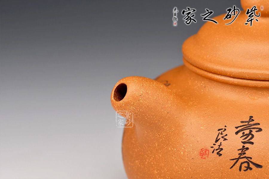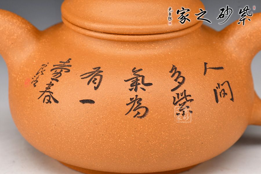 光貨離不開裝飾。俗話說“壺隨字貴,字隨壺傳”:光壺不刻字,就是一把光壺;壺上面刻了大師、名人的字,一把壺的含金量就高了,收藏價值就更高,升值潛力就更大。王福君與中國工藝美術大師譚泉海合作最多,其次是徐安碧、鮑志強、毛國強(均為中國工藝美術大師、中國陶瓷藝術大師)。