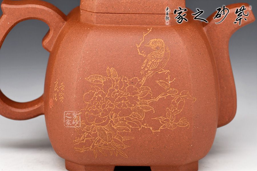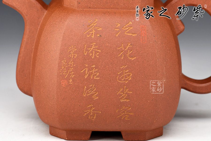 光貨離不開裝飾。俗話說“壺隨字貴,字隨壺傳”:光壺不刻字,就是一把光壺;壺上面刻了大師、名人的字,一把壺的含金量就高了,收藏價值就更高,升值潛力就更大。王福君與中國工藝美術(shù)大師譚泉海合作最多,其次是徐安碧、鮑志強(qiáng)、毛國強(qiáng)(均為中國工藝美術(shù)大師、中國陶瓷藝術(shù)大師)。