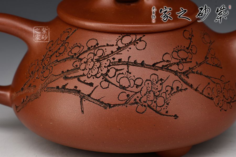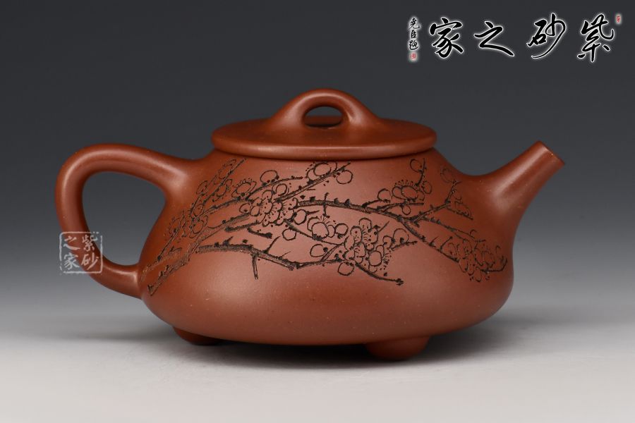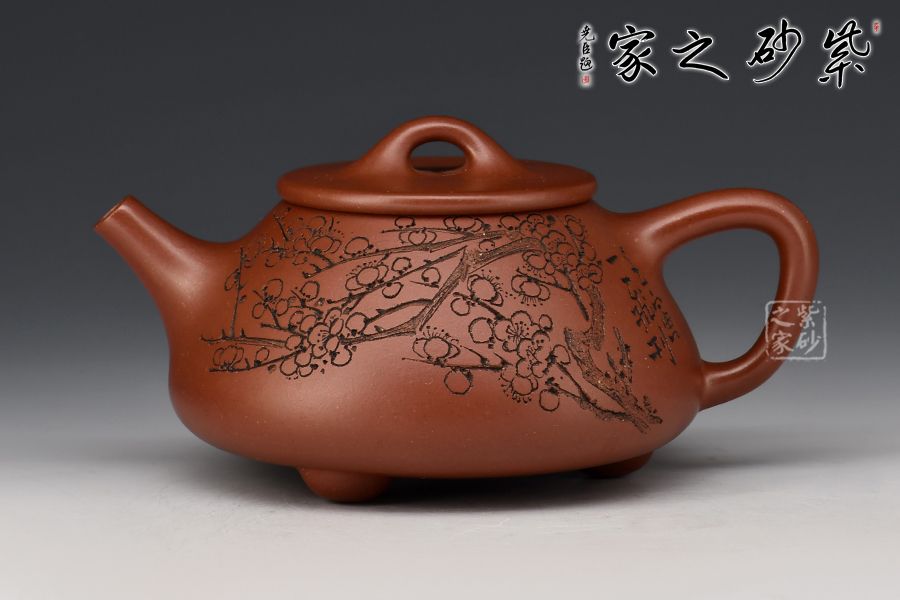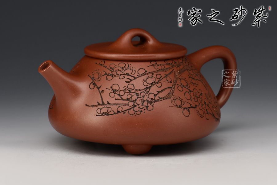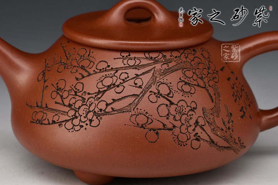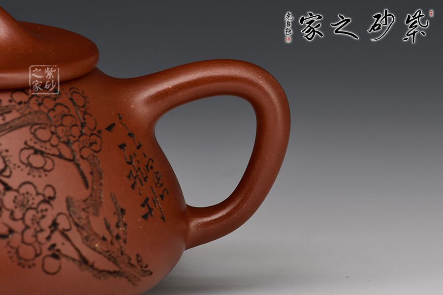 近三角壺身,三角壺把,直流嘴,橋型鈕、平蓋,勾勒成眼前的石瓢壺,壺身由雙刀妙手劉一飛刻繪,雙實(shí)力派名師合作,價(jià)值倍增!