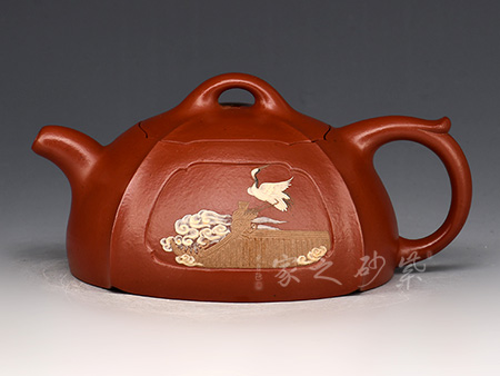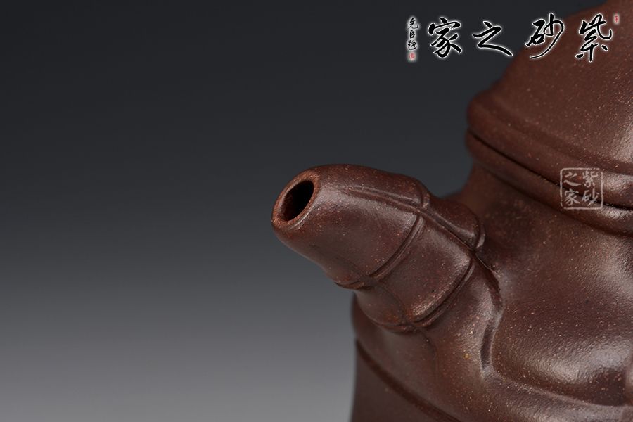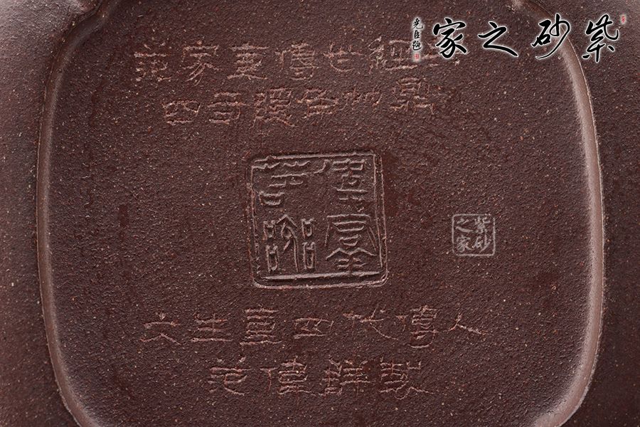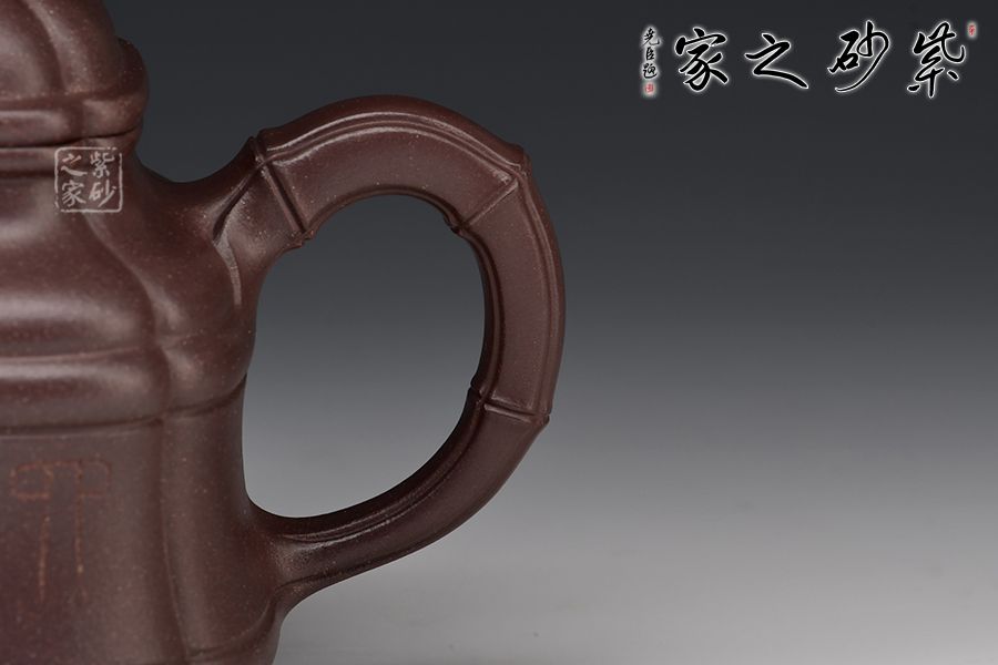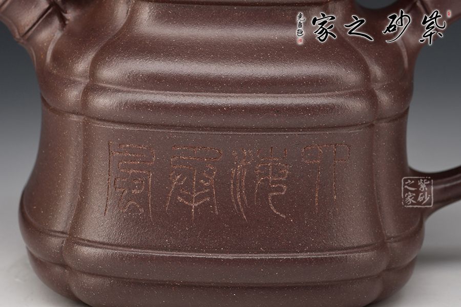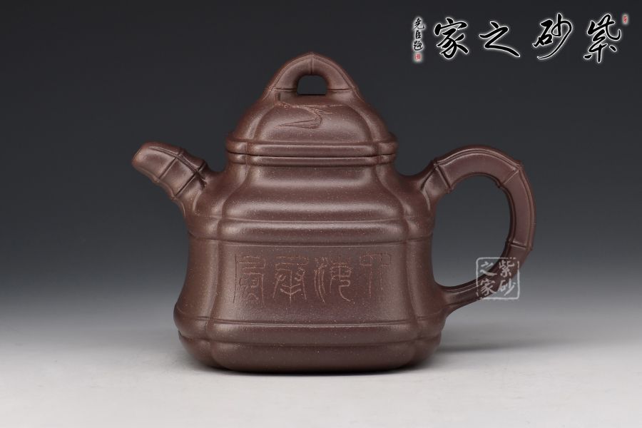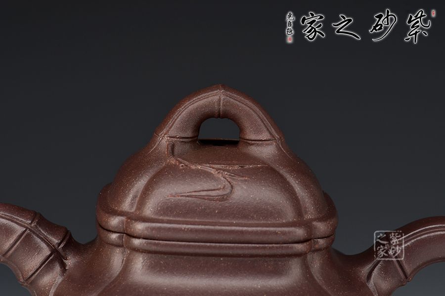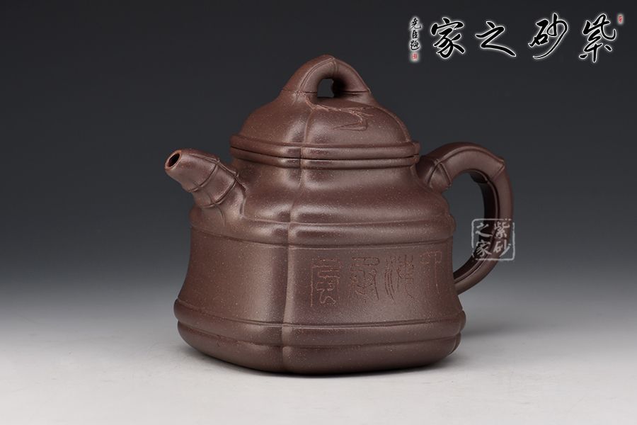 此四方隱角竹鼎壺由范大生嫡孫,范家壺莊創(chuàng)辦人范偉群巨制,將光、竹及筋紋諸器融為一體,壺身四方,方中寓圓,刻隱角竹節(jié)紋,飽滿圓湛,竹枝橋形鈕、拱形壓蓋,底、身、肩、蓋均呈四方,且疊砌成塔式,有節(jié)奏之美。壺身由書法家孫曉云裝飾,大師之作,收藏必入款!