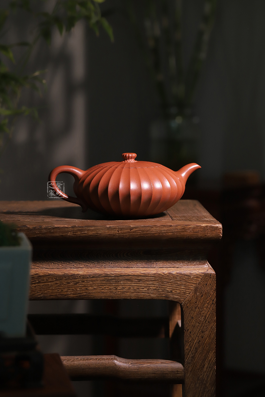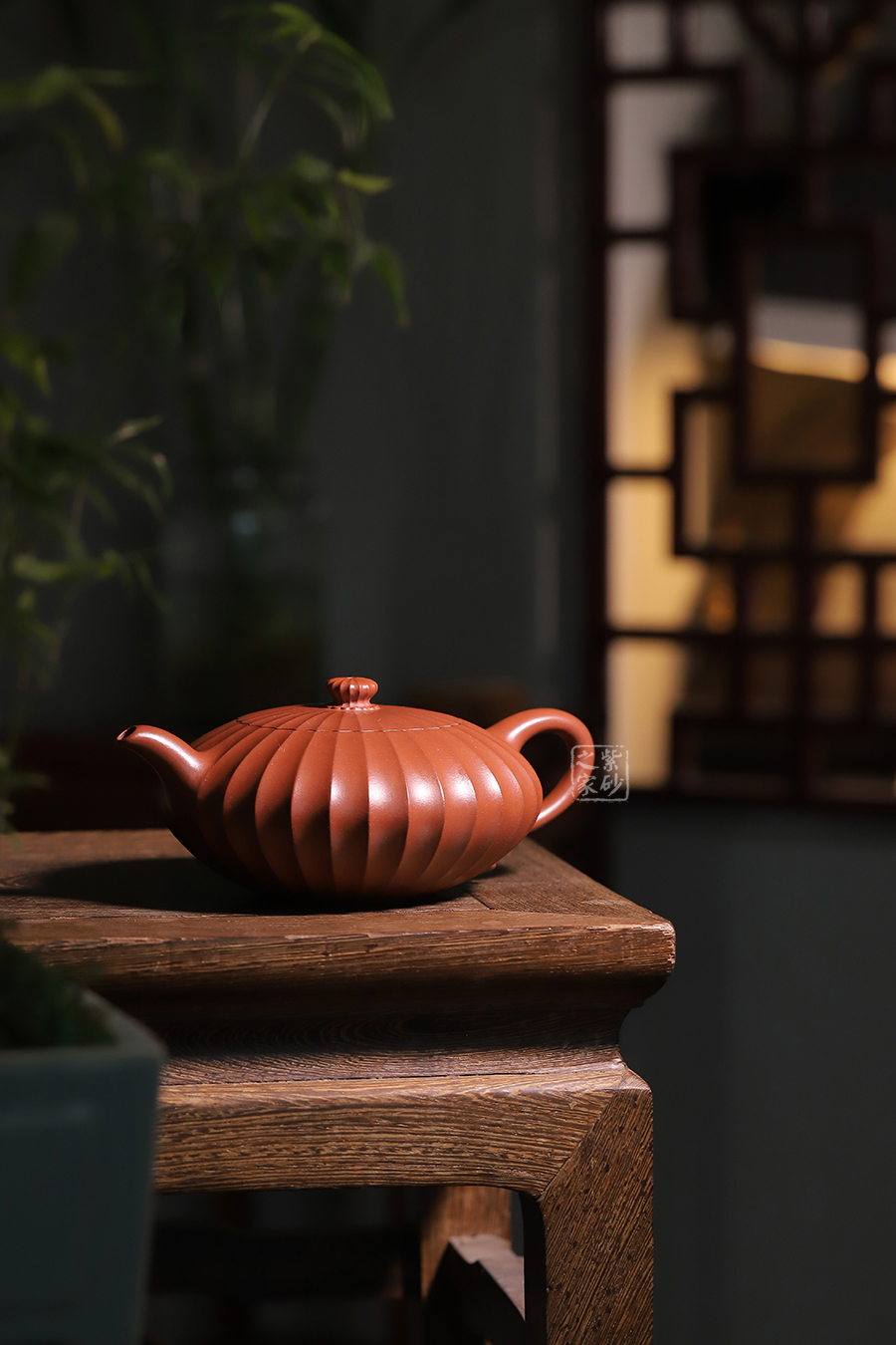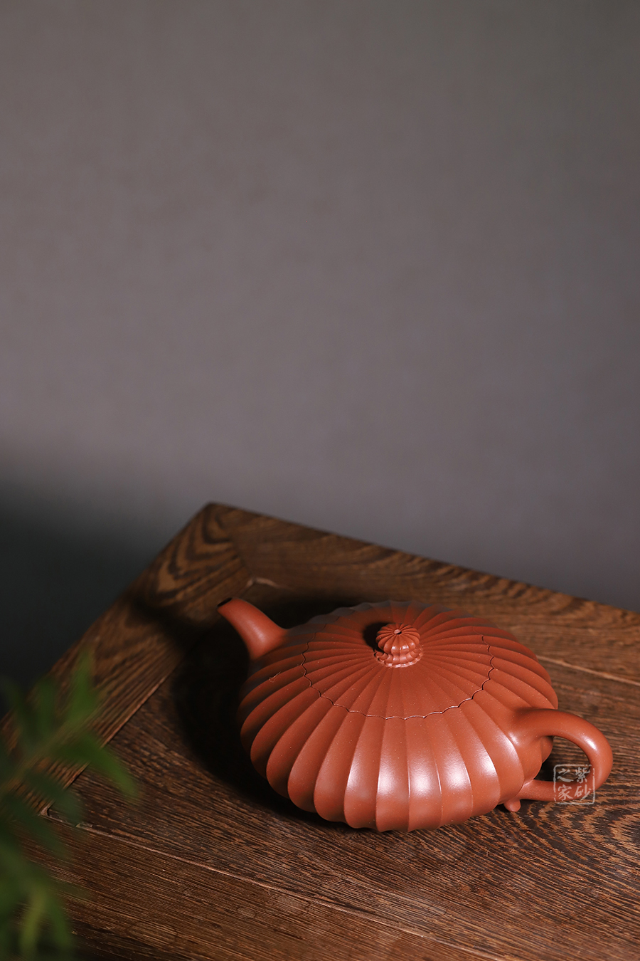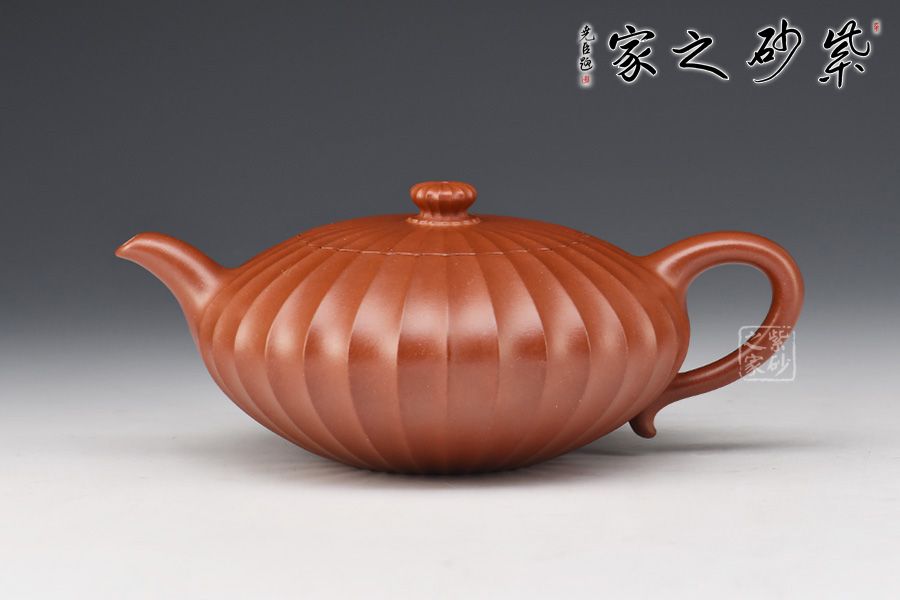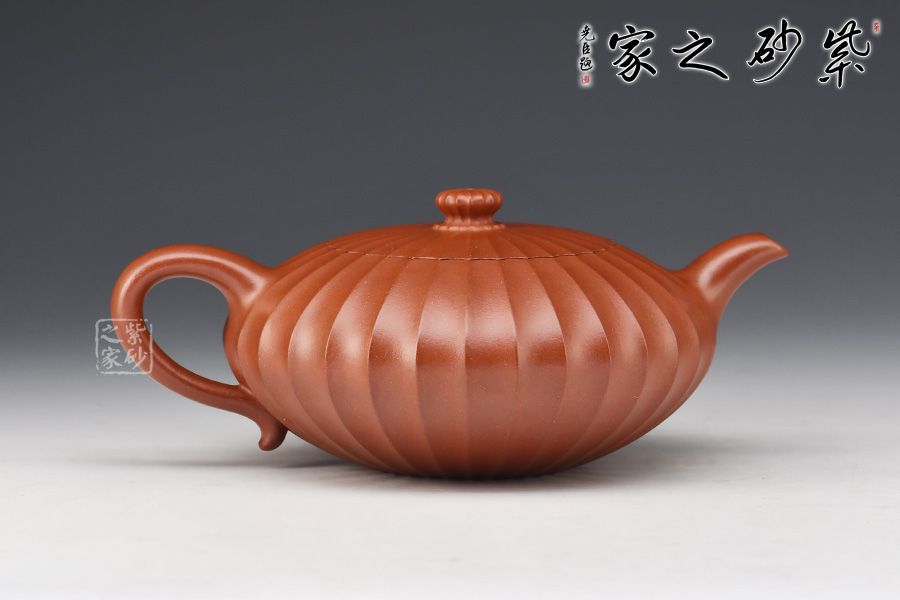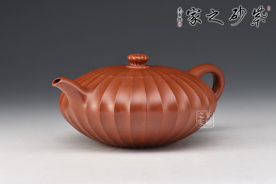 此壺通體布滿筋紋線條,以一朵盛開的花為原型進(jìn)行創(chuàng)造和制作,整個壺身由均勻等分的花瓣筋紋所組成,線條清晰有致,鼓囊圓潤,向外突出,使得整個壺身看起來十分飽滿。隨著筋紋的線條向上,逐漸向內(nèi)收成一個圓形的壺口。