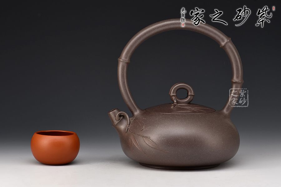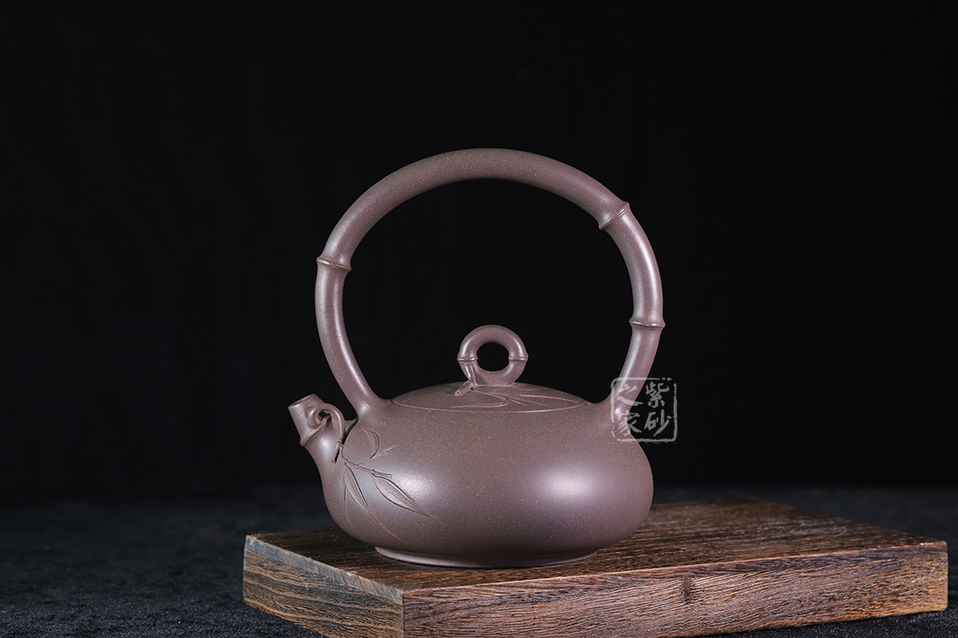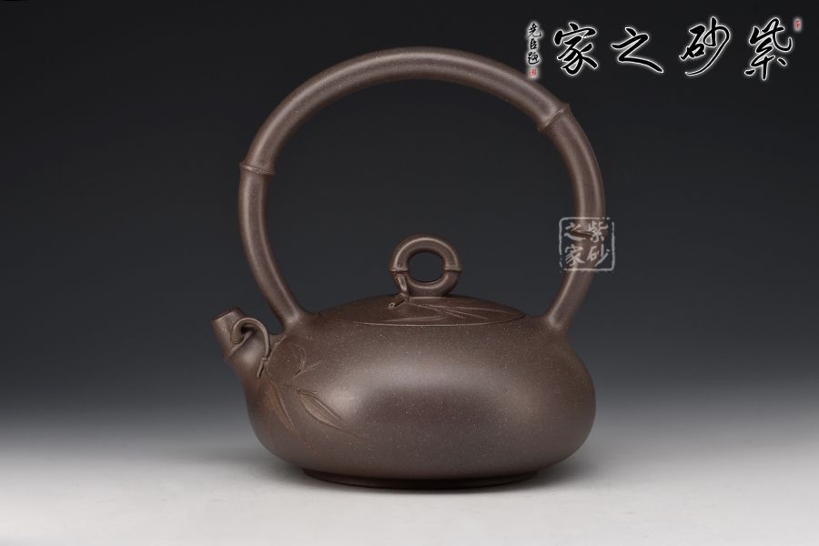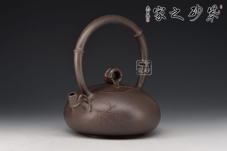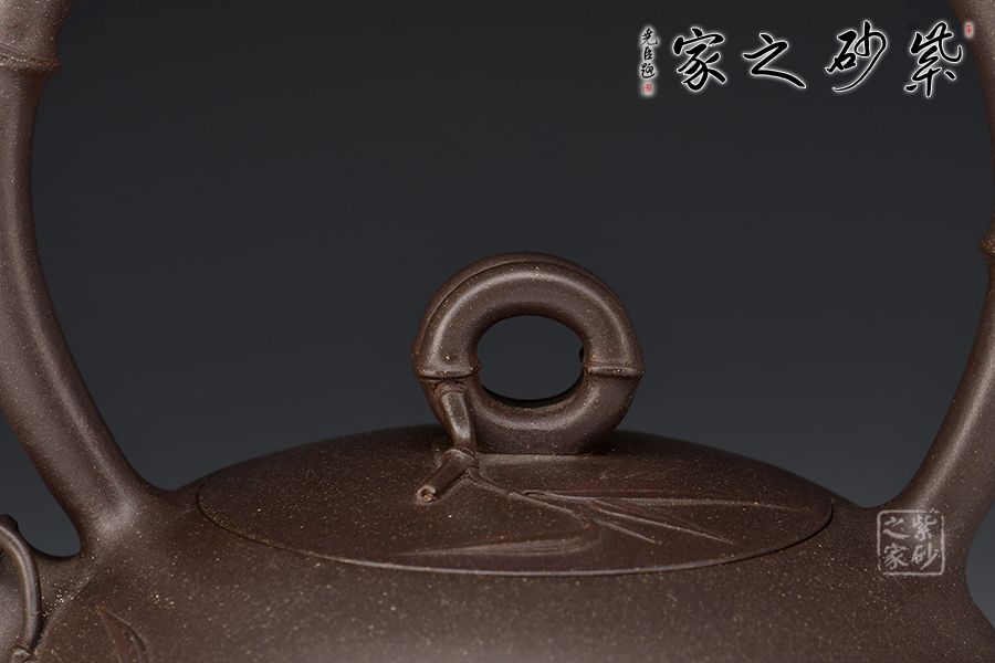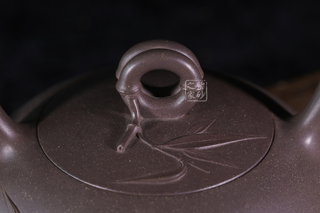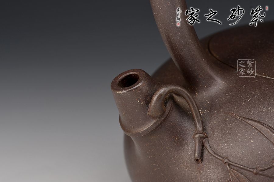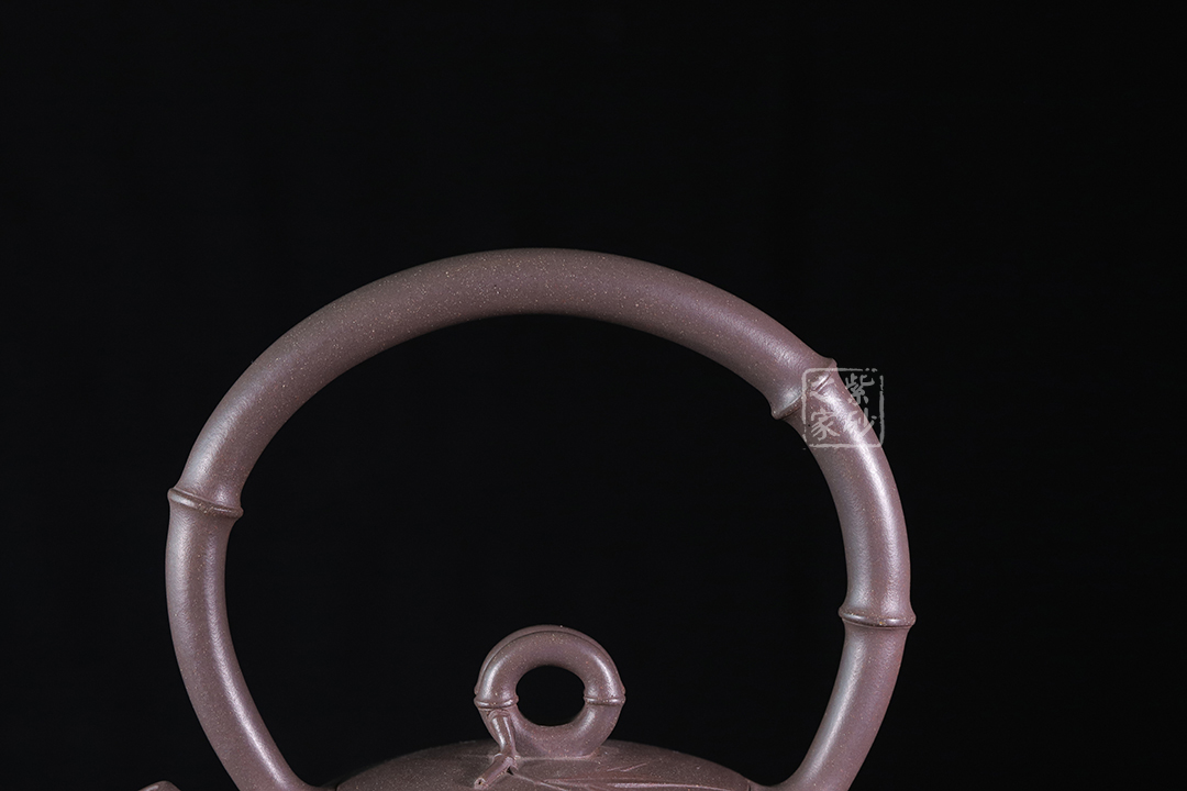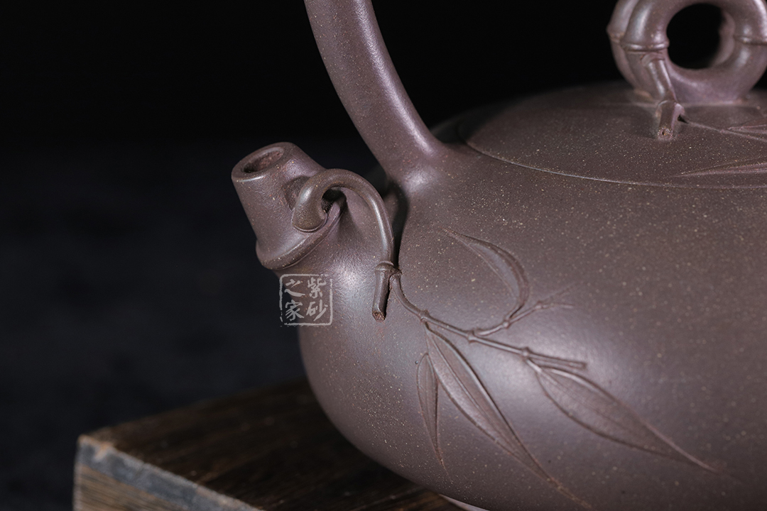 此壺為高溫青段,以竹元素入壺,壺身扁而飽滿,貼花精美。提梁、壺嘴和壺鈕皆為竹節(jié)。壺身及壺蓋上的貼花雋秀而絕無媚態(tài)、簡約而不失雅致,獨具老師個人風格。力薦!