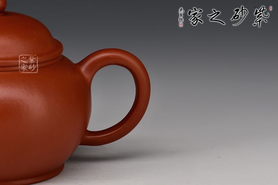 此壺選用大紅袍精制而成,泥色明潤(rùn)雅致,整器通體光素,造型雋永耐看,壺身飽滿,圓底圈足,口蓋穹起,流、把、鈕皆制作細(xì)巧,各比例恰到好處。作者扎實(shí)的功底,將整壺周正精美之姿展現(xiàn)淋漓,整器實(shí)用性佳,值得把玩!