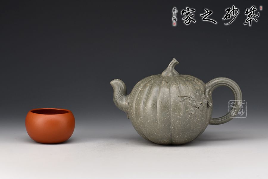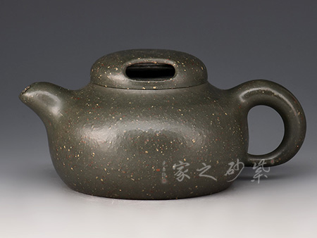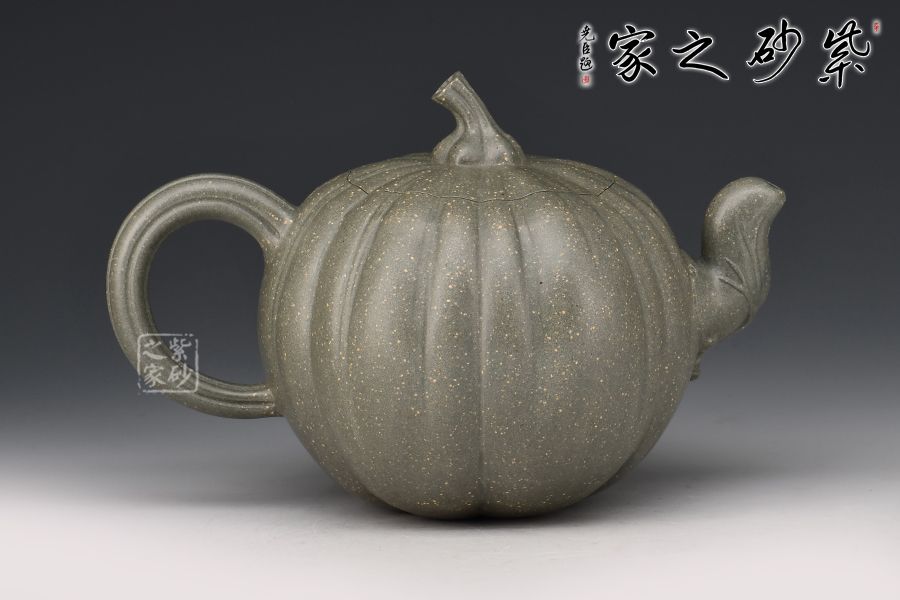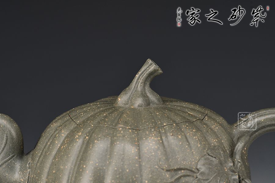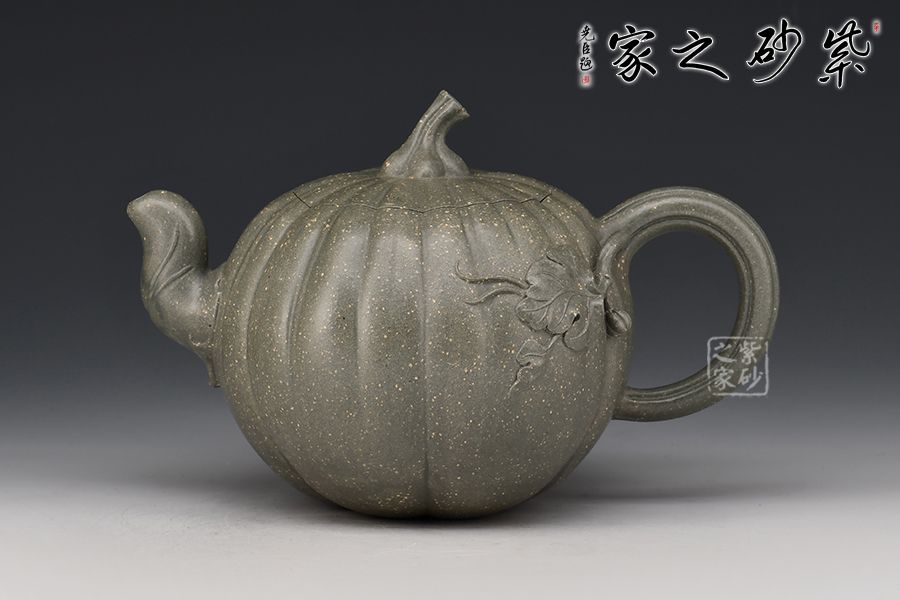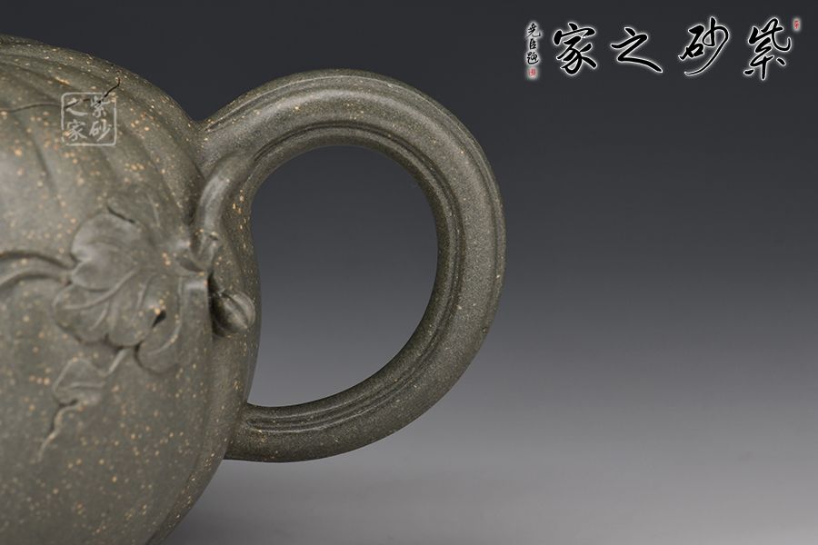 嚴(yán)偉,國(guó)家級(jí)高級(jí)工藝美術(shù)師,景舟杯“金獎(jiǎng)”得主。師承于省大師徐元明先生和國(guó)大師徐秀棠先生,并有幸得顧景舟大師指點(diǎn)。此款作品采用顧景舟同款泥料雪華綠泥制作,圓形身筒,鼓腹,形態(tài)可愛,憨厚可掬,壺身紋理清晰流暢仿若天成,瓜蒂樣壺鈕,壺身的貼花藤蔓,栩栩如生。此壺仿若天賜之作,值得賞玩!