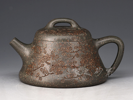 泥料是與顧景舟的雪華壺屬同一配方配制而成,泥絞泥,泥中有段砂,燒成后的效果如同雪花似的!