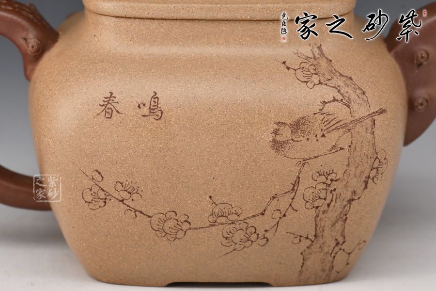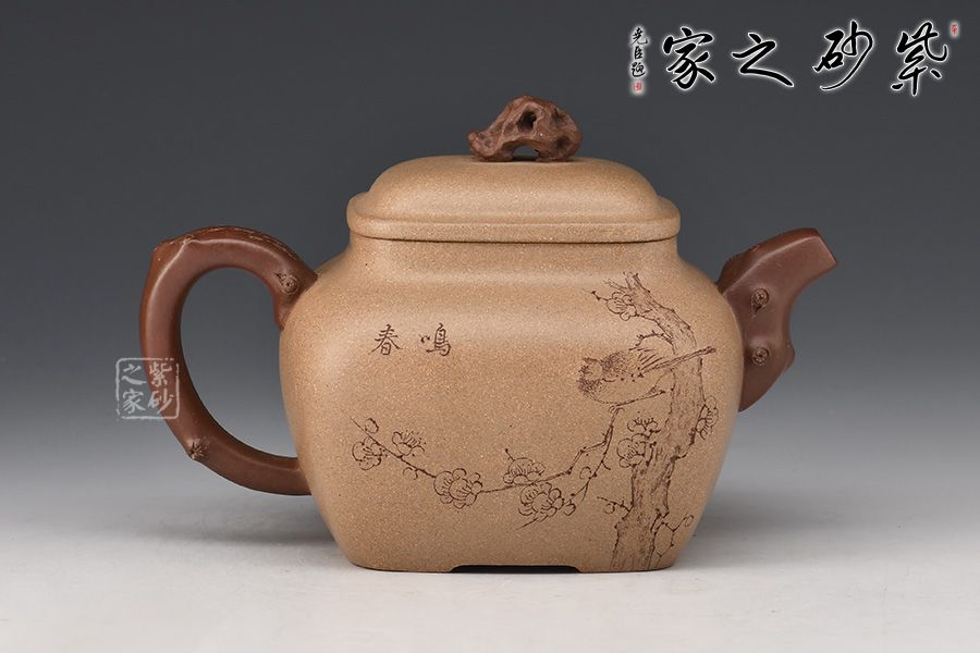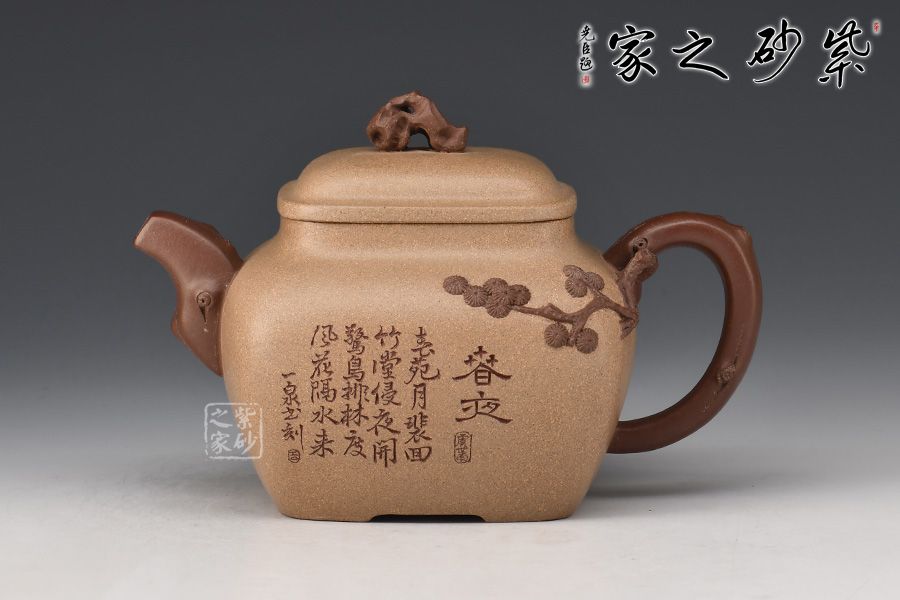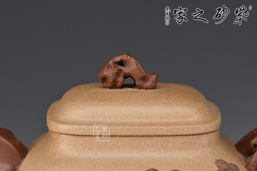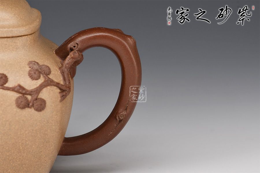 細(xì)看此壺,不禁令人想起一句詩(shī):“靜臥云臺(tái)且聽(tīng)松,不爭(zhēng)道旁苦李果”,與這作品對(duì)照,真是形意俱佳。厚重飽滿的壺身如同一座高山,壺嘴、壺把設(shè)計(jì)成松枝造型,便如同一顆松樹(shù)是高山懸崖邊旺盛的生長(zhǎng)著,擁有頑強(qiáng)的生命力;壓蓋設(shè)計(jì),壺鈕十分獨(dú)特,形似石頭,精致非常。穆明龍老師手工制作的此壺造型雅致,很有文人風(fēng)韻,值得細(xì)細(xì)品味把玩!