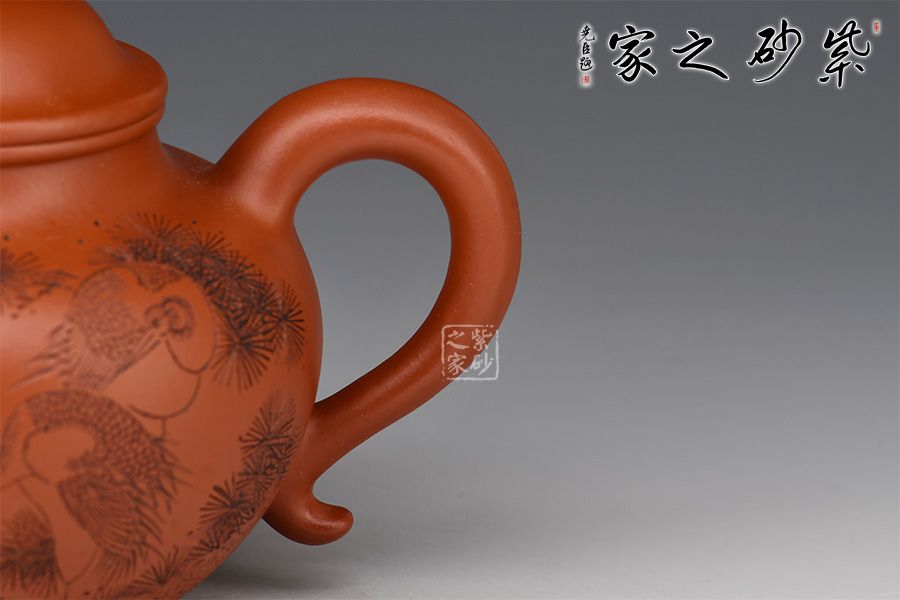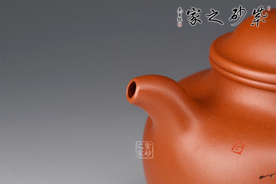壺身弧度飽滿(mǎn),壺肩圓滑自然,流把協(xié)調(diào)張力十足,口蓋線圓潤(rùn)精細(xì)。