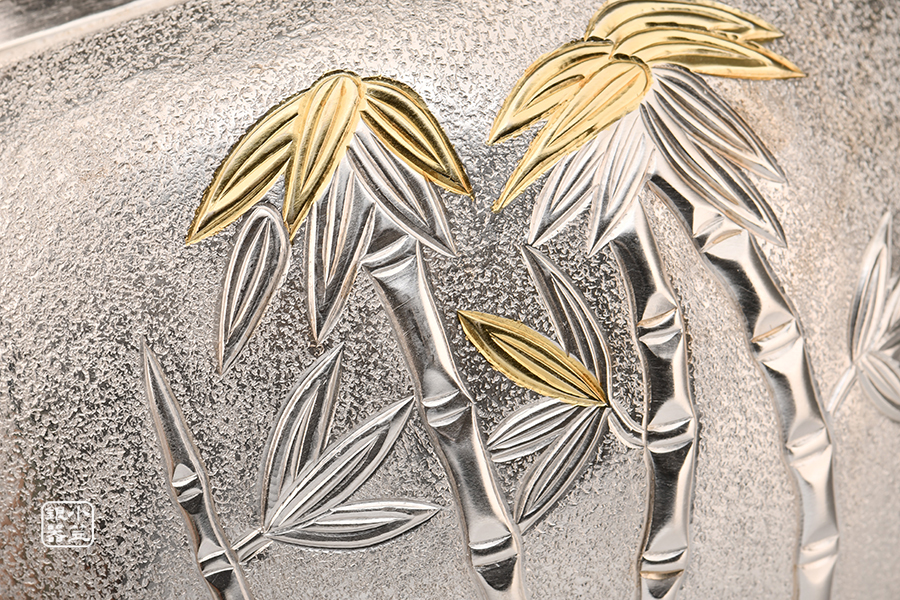 蘋果形鍍金竹紋銀壺 [ 編號:187583 ]
