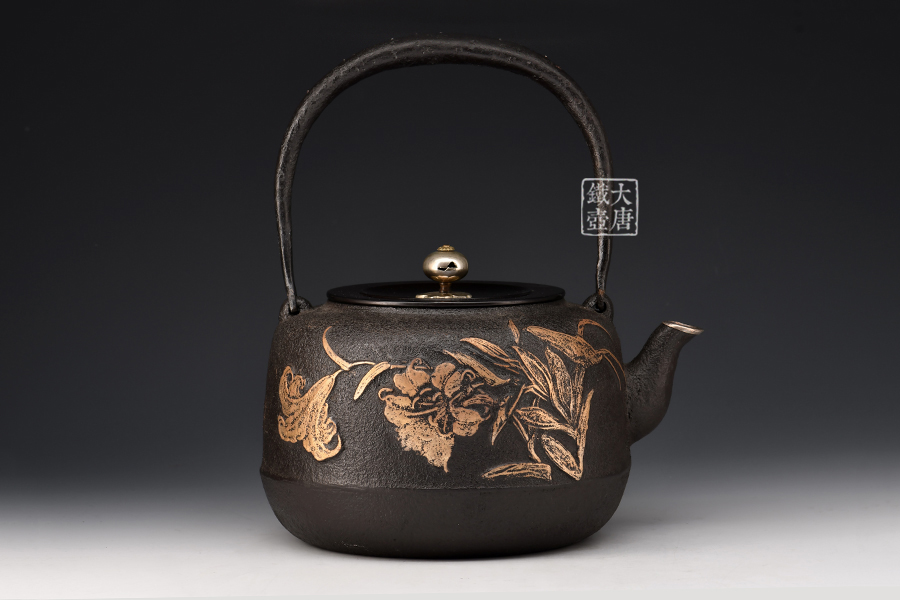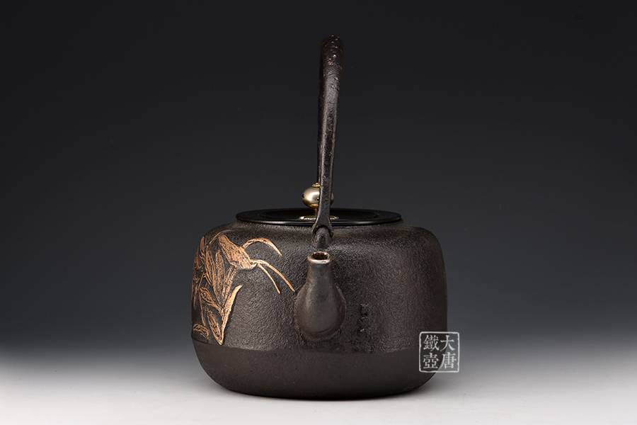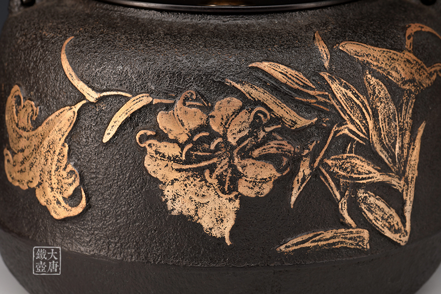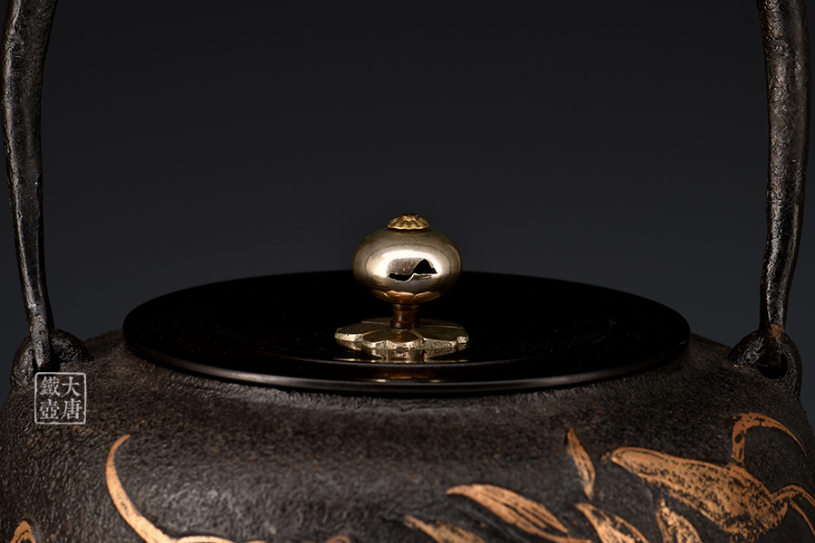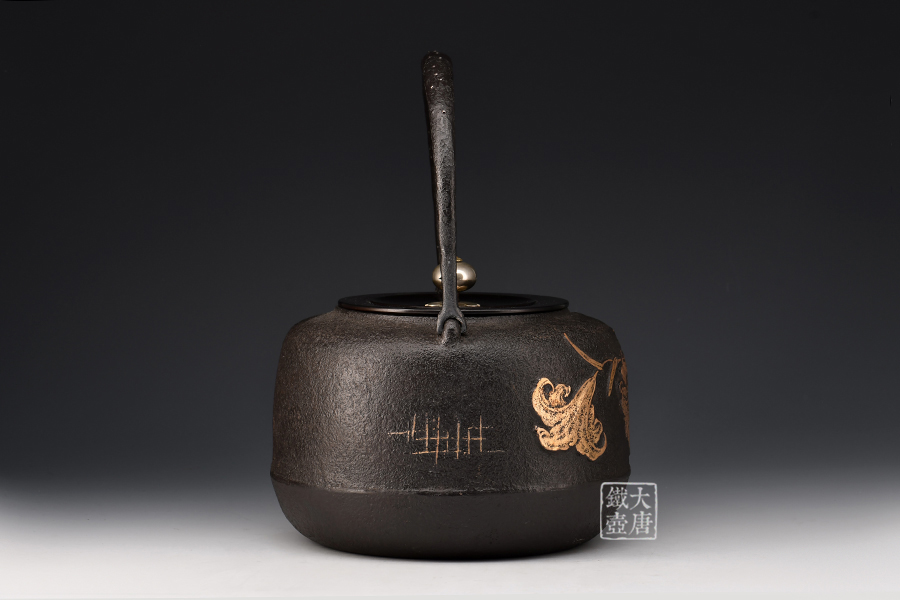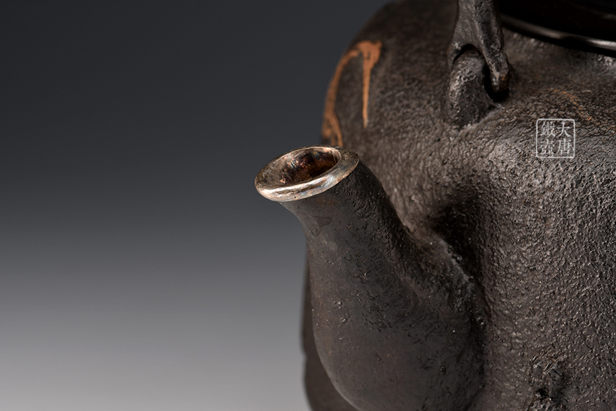 荒井工房的鐵瓶除了在鑄造工藝上有嚴(yán)格的規(guī)范和體系,在鐵瓶裝飾技術(shù)上也頗有建樹。除了傳統(tǒng)的印刻技術(shù)外,荒井工房還掌握了非常出色的金銀鑲嵌技藝,尤其以大片的鏨刻銀片最為出眾,這在山形當(dāng)?shù)靥每谥歇?dú)樹一幟。