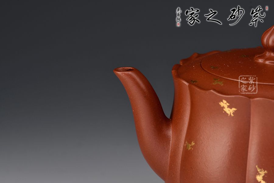 把與嘴相呼應(yīng),極為和諧。泥料精良,撒金裝飾,宜賞宜藏宜把玩!
