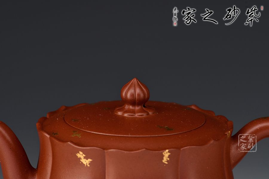 蓮花燈形珠鈕,平蓋壓口,嚴(yán)絲密縫,泡茶不外溢。