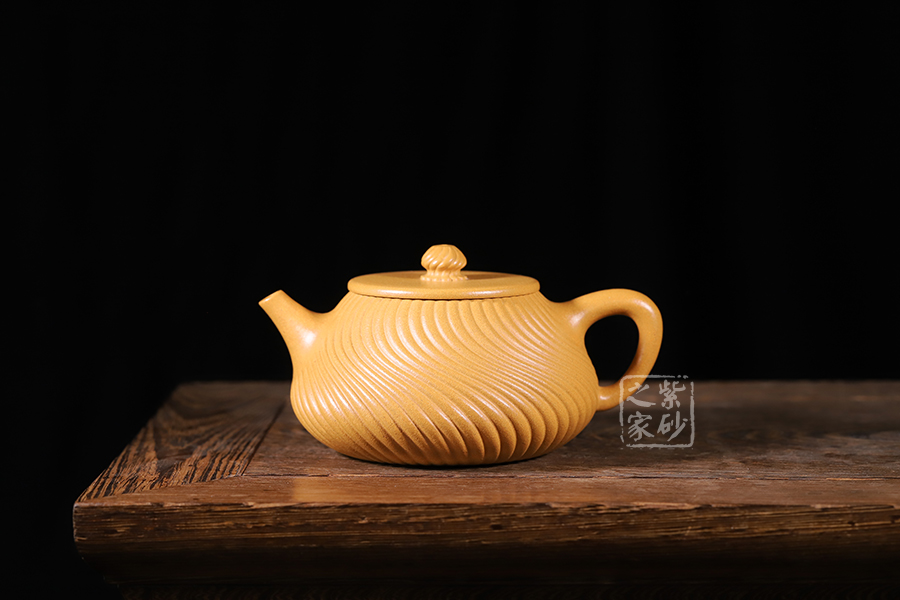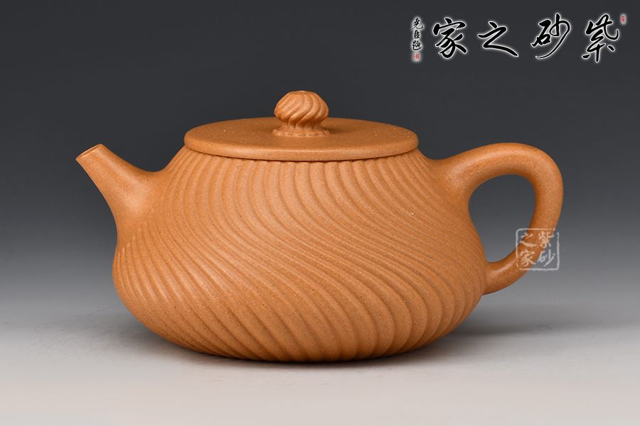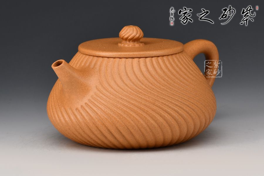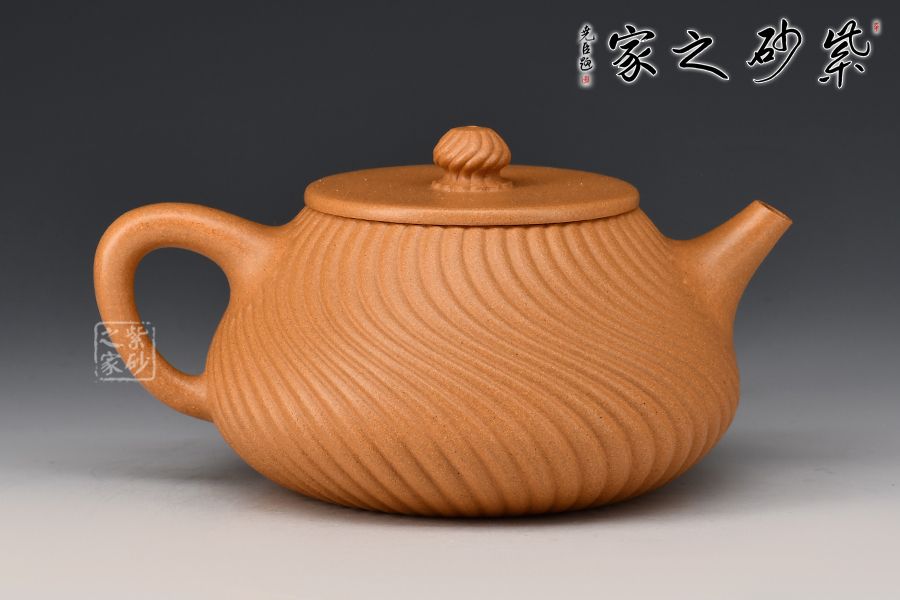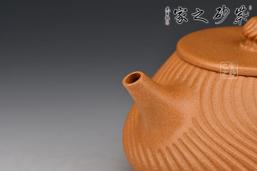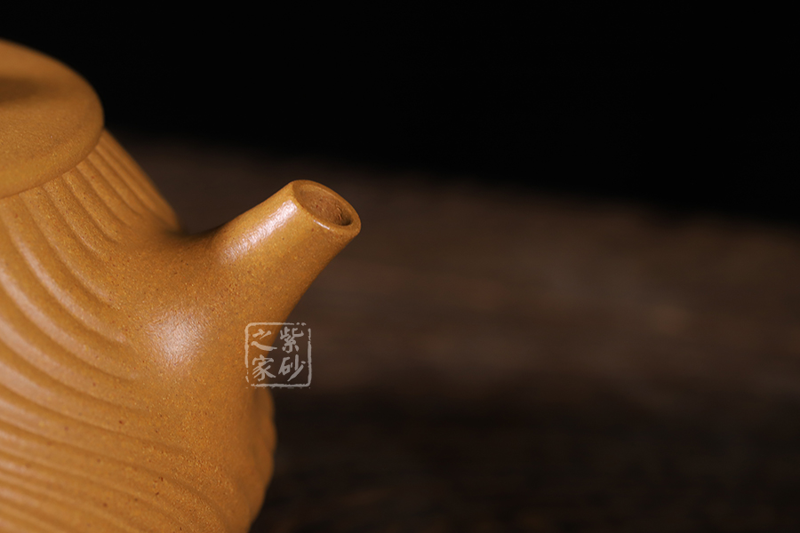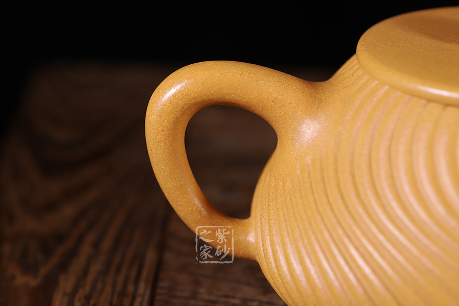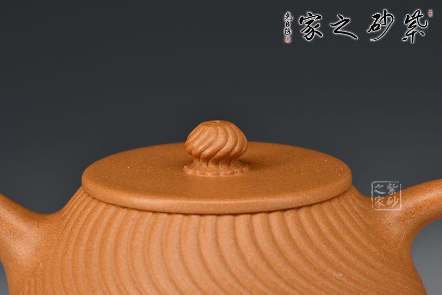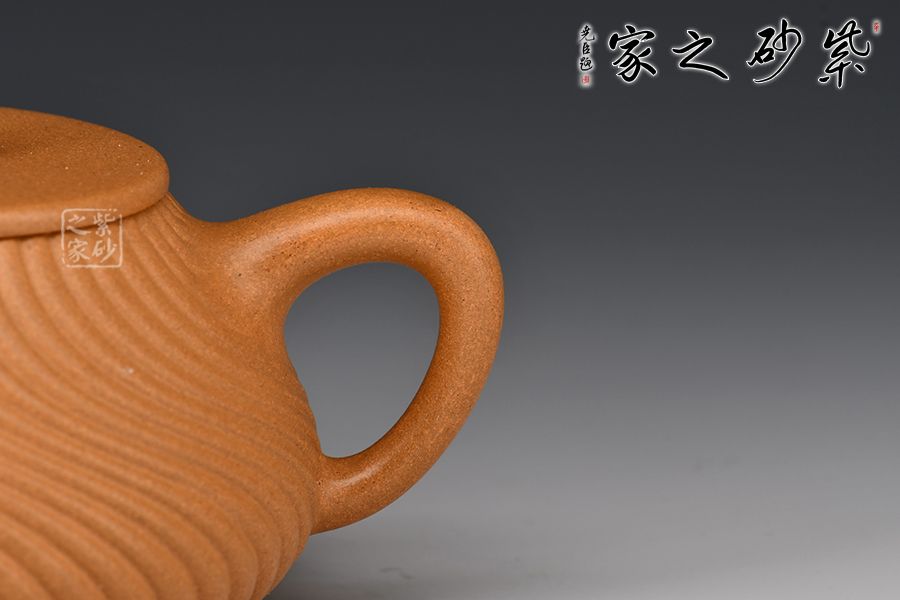 美觀大方點(diǎn)題壺名。壺鈕、壺身自壺底的筋紋上下對(duì)應(yīng),連接嚴(yán)密,筋紋線條紋理清晰,制作精巧,