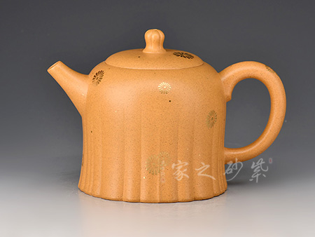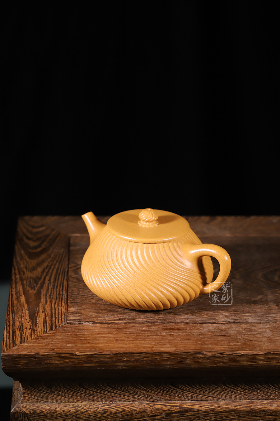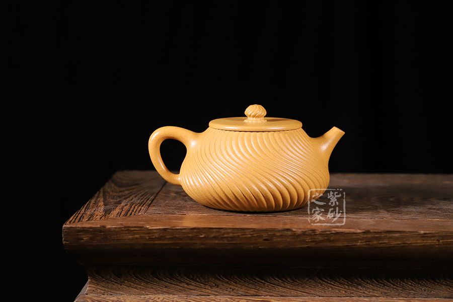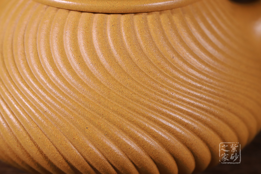 此壺造型新穎,取自石瓢之形,卻用筋紋表達(dá),筋紋條紋圓滑緊密,仿佛細(xì)長(zhǎng)的菊花花瓣,