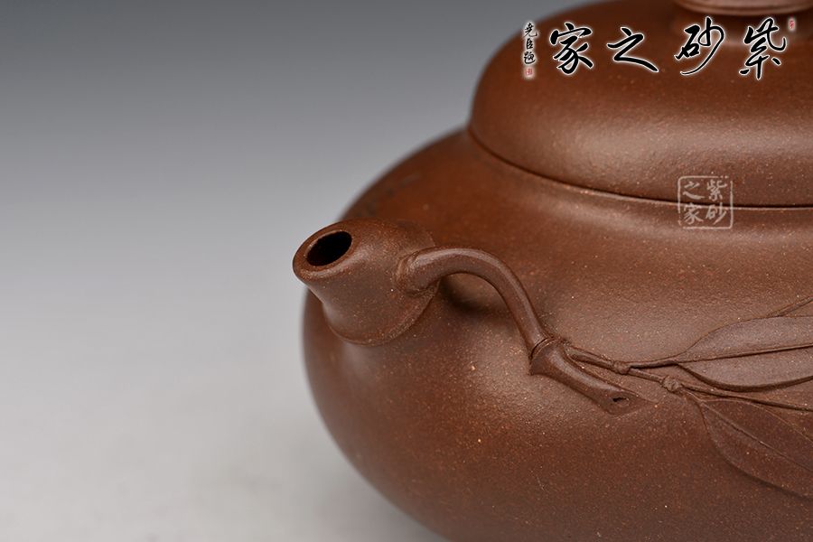 整器清新自然,含蓄內(nèi)斂。壺身圓潤淡雅,嵌蓋鼓起,竹枝為鈕,飽滿的竹段嘴與整器極度和諧,令人心生清風(fēng)。竹枝為把,清韻油然而生。