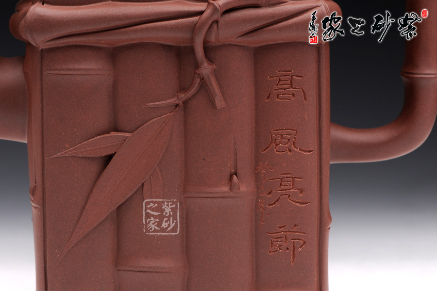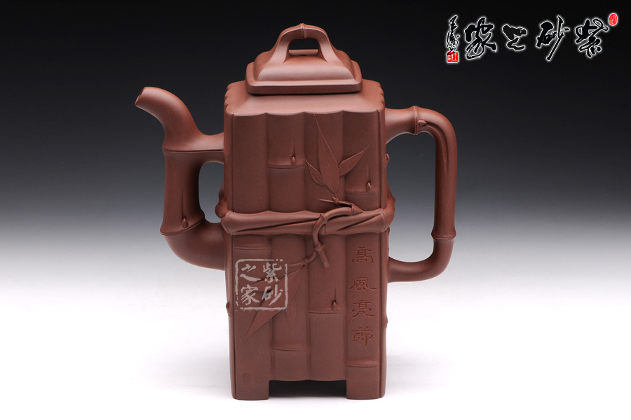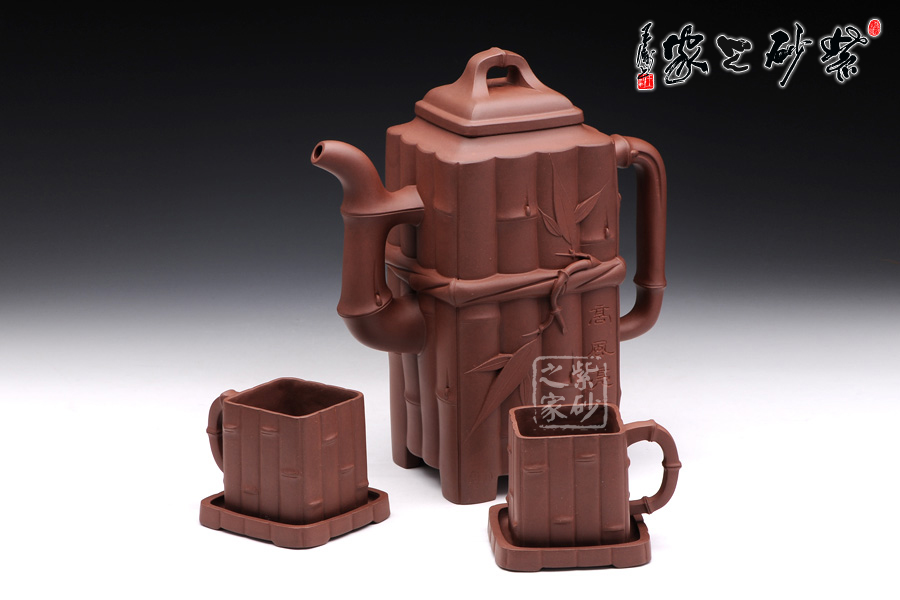 此套組壺由一壺兩杯組成,杯的造型與壺相似,搭配成套;高風亮節(jié),江曉燕老師新作,江老師久經(jīng)歷練,向多位紫砂方器大師討教技巧,廣收博取,耗費6個月時間,傾力制作此壺。此壺采用老紫泥,1900cc,體積碩大,全手工,制作難度巨大,壺型為四方器型,壺身由竹節(jié)裝飾,精美秀氣,能由器入道,穿透壺的形制而直追其魂魄,制其壺,獨一無 二。