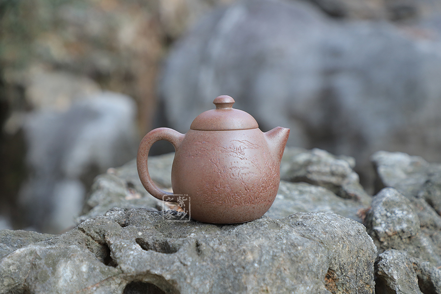 此外,整壺采用古法1300°高溫窯變技藝,壺身色調(diào)泛金屬光澤,黑色鐵質(zhì)清晰可見,極具個性。