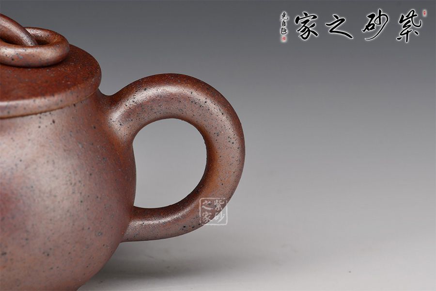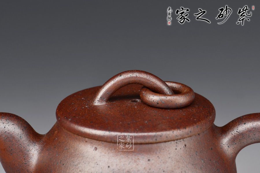 蒯良榮,有窯火魔術(shù)師美譽(yù),其獨(dú)有、高超、神秘的配泥和燒制功夫,魔幻般的紫砂壺色調(diào),在紫砂界獨(dú)一無(wú)二。此款玉環(huán)壺是在超高溫窯變下燒制而成,返璞歸真,用此壺泡茶,茶湯的色、香、味保留更加濃郁和逼真。整壺流與把及橋鈕協(xié)調(diào)得當(dāng),壓蓋與壺口嚴(yán)絲合縫,大口蓋投茶方便,此壺超級(jí)實(shí)用,也值得珍藏!