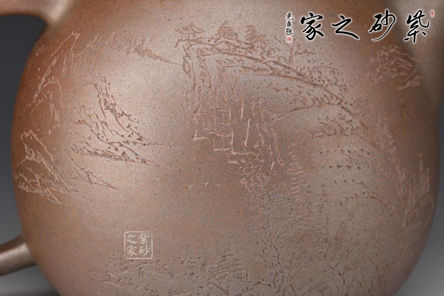 龍蛋壺為傳統(tǒng)器型,通體狀似蛋形,蓋與壺身渾然一體,氣密性良好,笠形三角狀壺鈕別致而精巧,直流嘴過出水迅猛有力,大圈把與壺體趁勢,重心下沉!窯火魔術(shù)師蒯良榮大師超大品重器,王少云大師合作刻繪,強強聯(lián)合,入手升值!