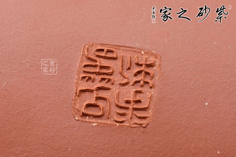 該壺形制古樸,器形飽滿大方,線條轉(zhuǎn)折分明。以獨(dú)特的藝術(shù)手法及巧妙的構(gòu)思,將中國(guó)傳統(tǒng)文化有機(jī)的融入到紫砂壺藝制作當(dāng)中,使紫砂壺升華為更高層次的藝術(shù)觀賞物,彰顯文人魅力。