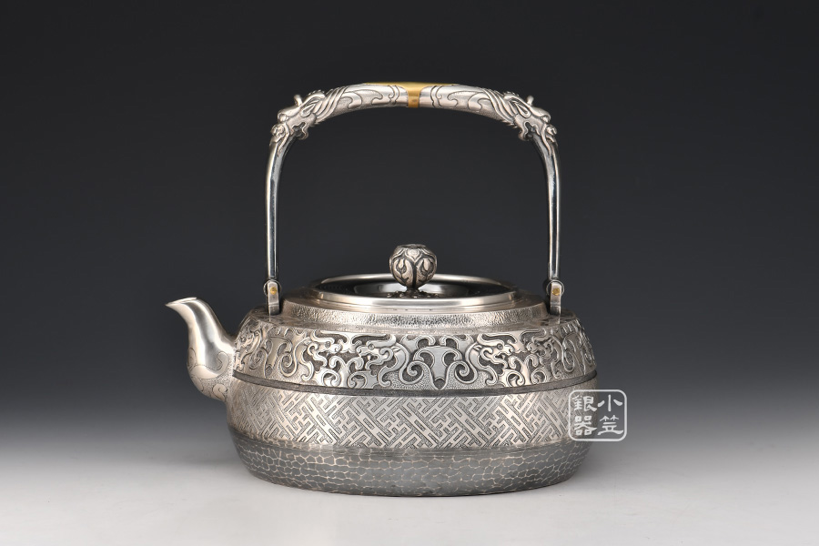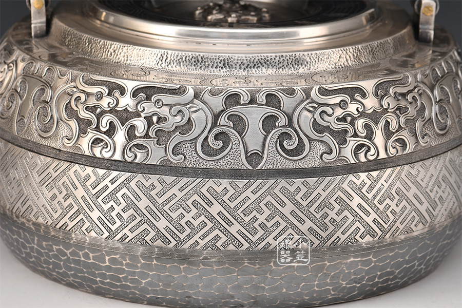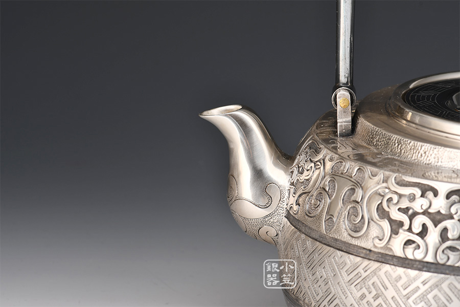 銀壺的制作是段六一對小爐匠傳統(tǒng)的傳承,也是金屬工藝的集大成。一張打、片打出等技術(shù),鏨刻、雕花、成形等工藝看似簡單,實則需要深厚的工藝基礎(chǔ)。銀板多半毫則太后,銀板少半毫則太薄。收口不到位則銀壺出水不流暢,鏨刻少了藝術(shù)功底則暗淡無光。從佛像到佛塔,從藏刀到到壁畫,段六一40年來對工藝的苛求最終在銀壺上得以集合。正是由于工藝的繁復(fù)和精準(zhǔn),手工藝人們才說“做好了銀壺,才是一個合格的手藝人”。