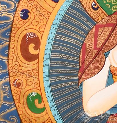 2、不能暴曬,因為唐卡是畫在棉布上的,如果暴曬的話使棉布膨脹把畫面上的顏色拉開出現裂縫,且盡量將唐卡放在恒溫處。