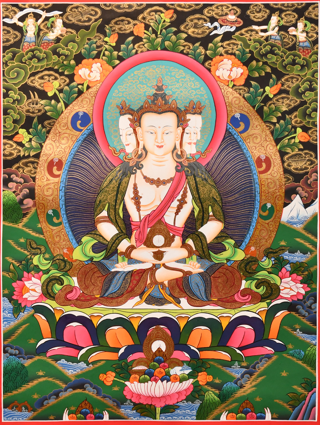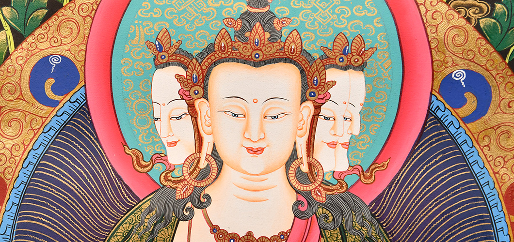 唐卡“師傅”開臉,筆路穩重流暢。體現完美天人相,可見佛菩薩慈眉善目,賦予唐卡畫像生的靈氣。