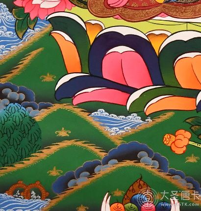 2、不能暴曬,因為唐卡是畫在棉布上的,如果暴曬的話使棉布膨脹把畫面上的顏色拉開出現裂縫,且盡量將唐卡放在恒溫處。