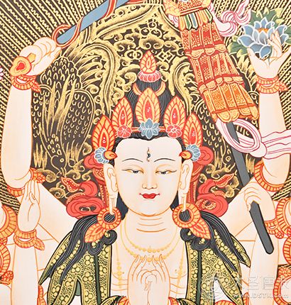 唐卡“師傅”開臉,筆路穩重流暢。體現完美天人相,可見佛菩薩慈眉善目,賦予唐卡畫像生的靈氣。