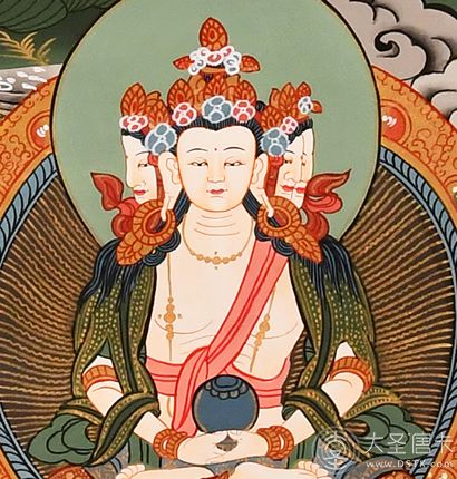 唐卡“師傅”開臉,筆路穩重流暢。體現完美天人相,可見佛菩薩慈眉善目,賦予唐卡畫像生的靈氣。