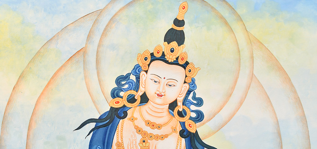 唐卡“師傅”開臉,筆路穩重流暢。體現完美天人相,可見佛菩薩慈眉善目,賦予唐卡畫像生的靈氣。