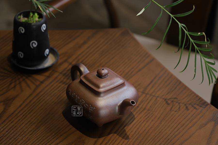 四方傳爐壺為清末民國(guó)時(shí)期較為流行的壺式之一,靈感源于青銅器,自側(cè)而視,壺身渾圓,俯而視之,形為四方,似將天地方圓的道理寄寓其中。