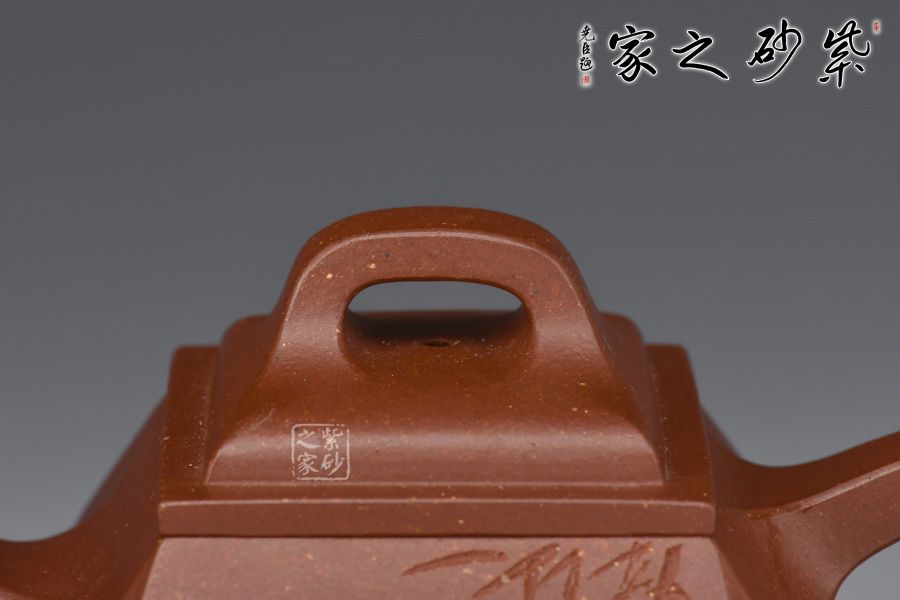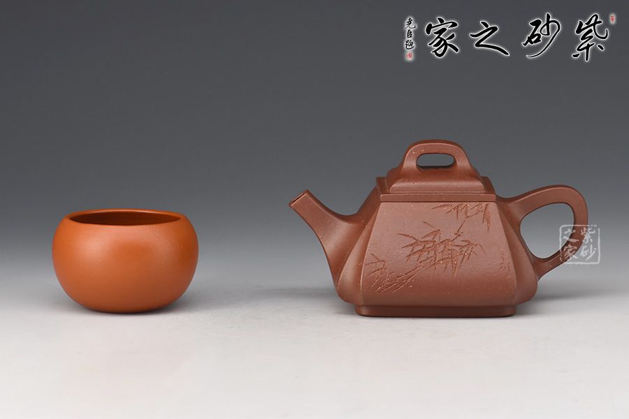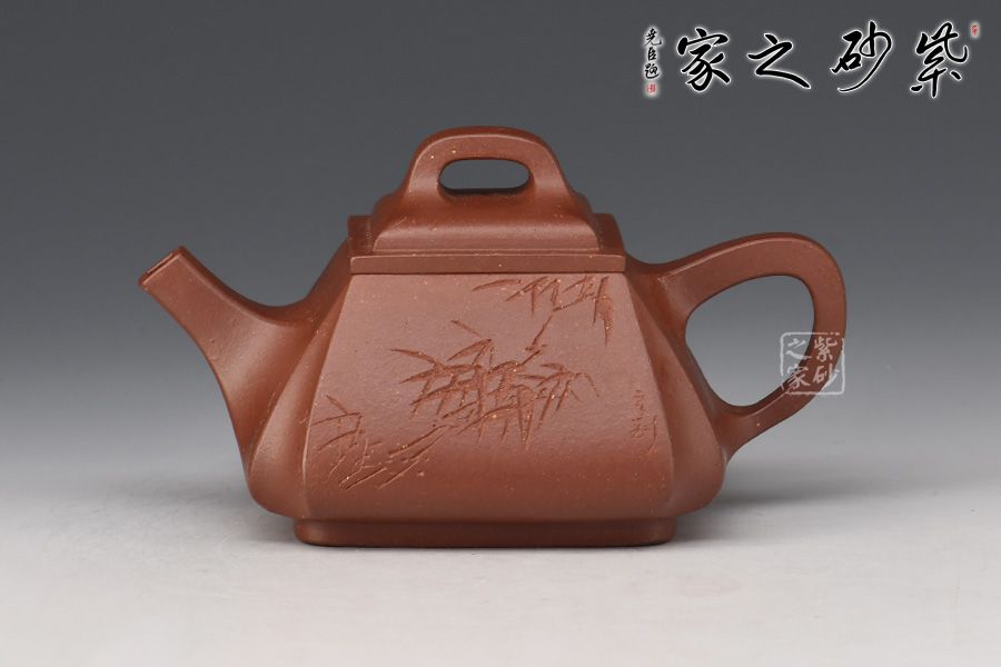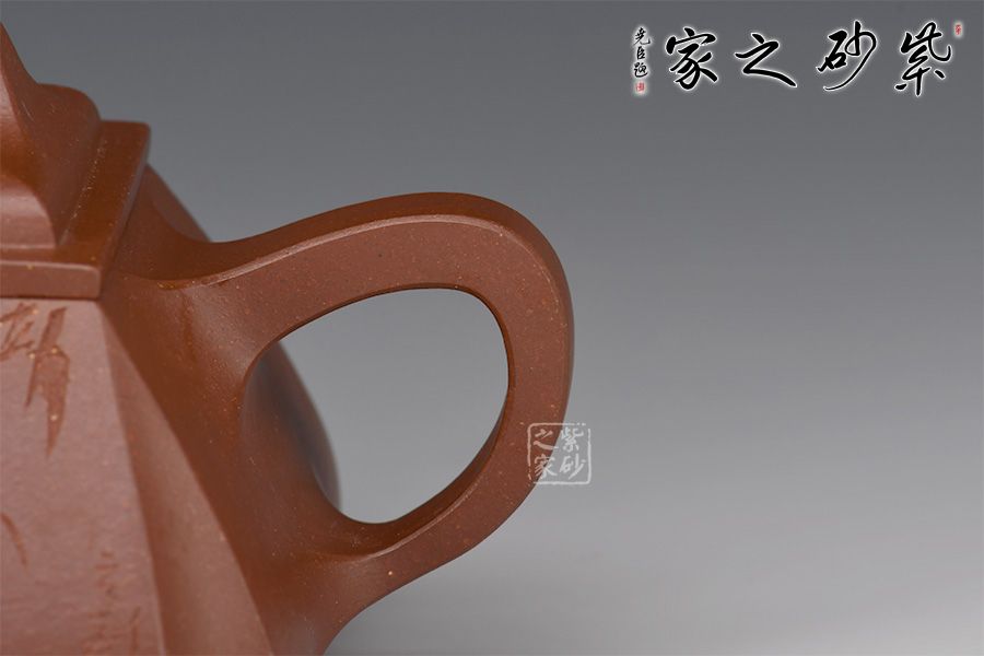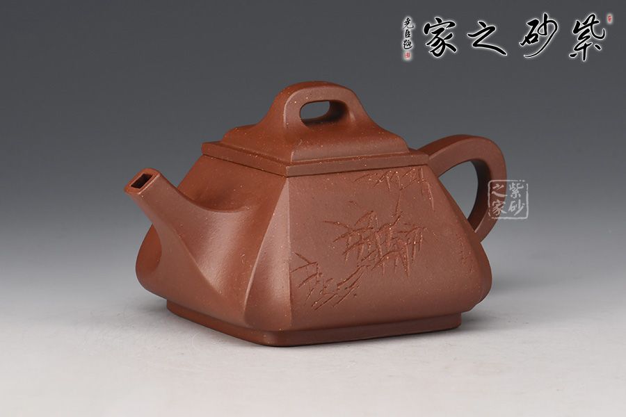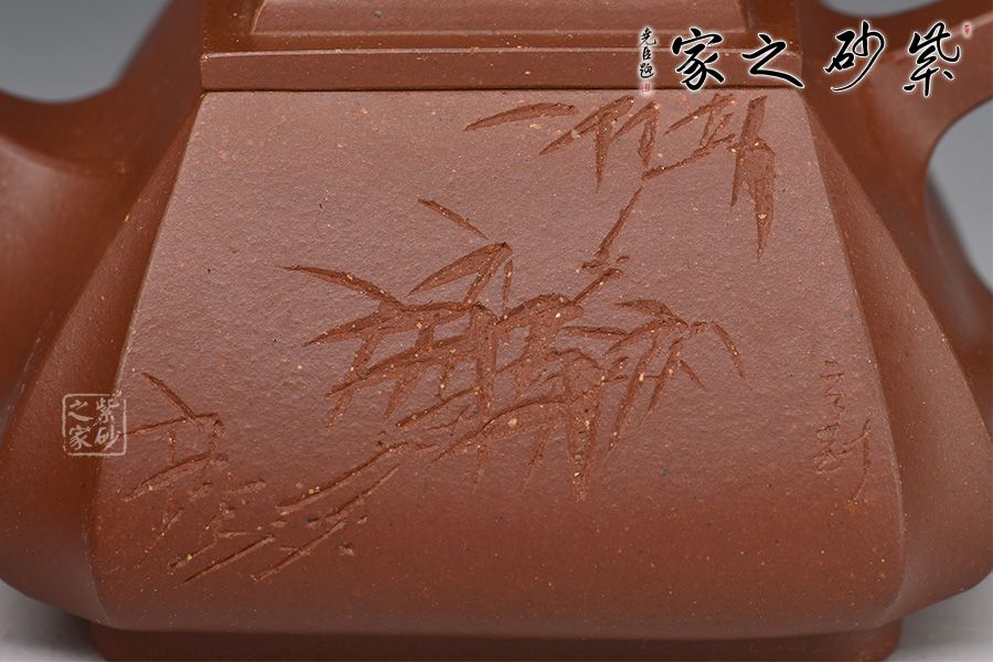 《四方抽角石瓢壺》老師采用原礦底槽青、經(jīng)全手工制作成型。壺體保留了石瓢的穩(wěn)健敦厚,壺流與壺把化圓為方,左右舒展,藏剛勁于力蘊(yùn)之中。四角側(cè)收藏鋒不露,塊面挺括有度,手法極為收斂,只在壺腹轉(zhuǎn)角表現(xiàn)出幾分飽滿之意,制壺手法之純熟,可謂收放自如!刻繪竹子,觀之怡情悅目,增添此作的藝術(shù)價(jià)值。