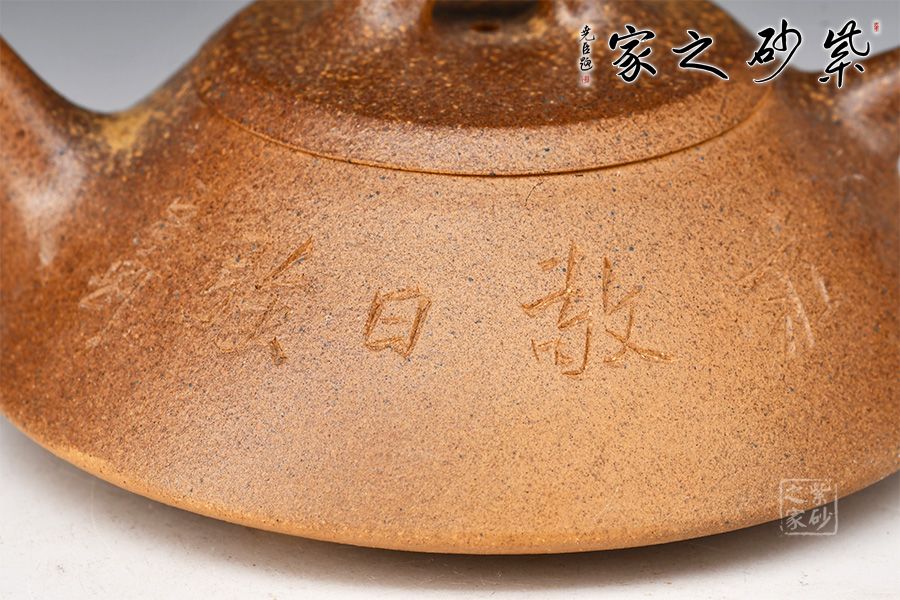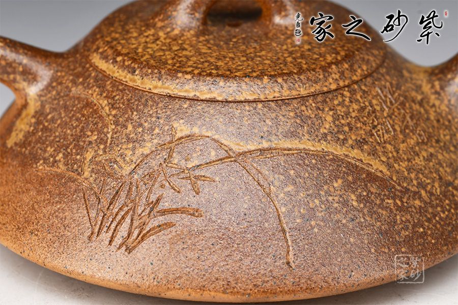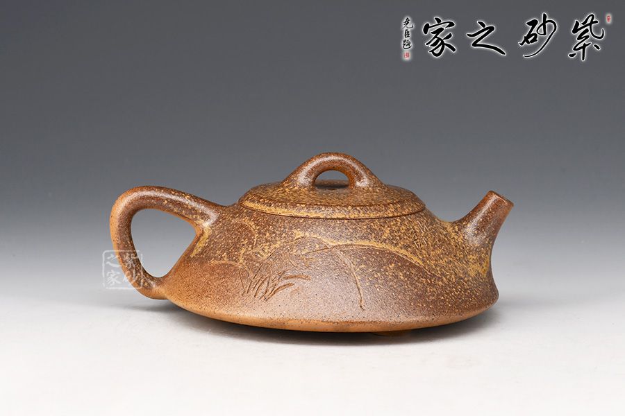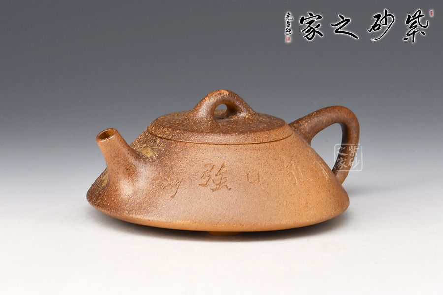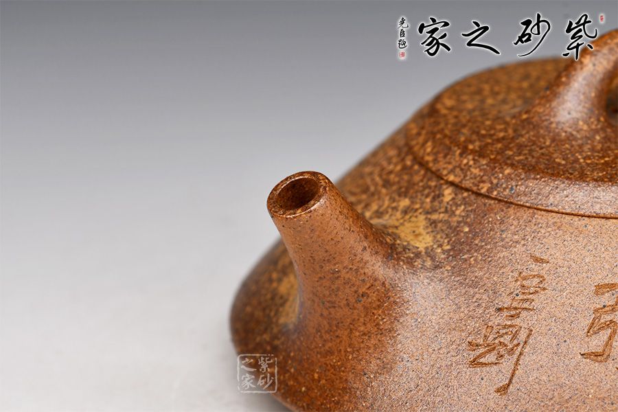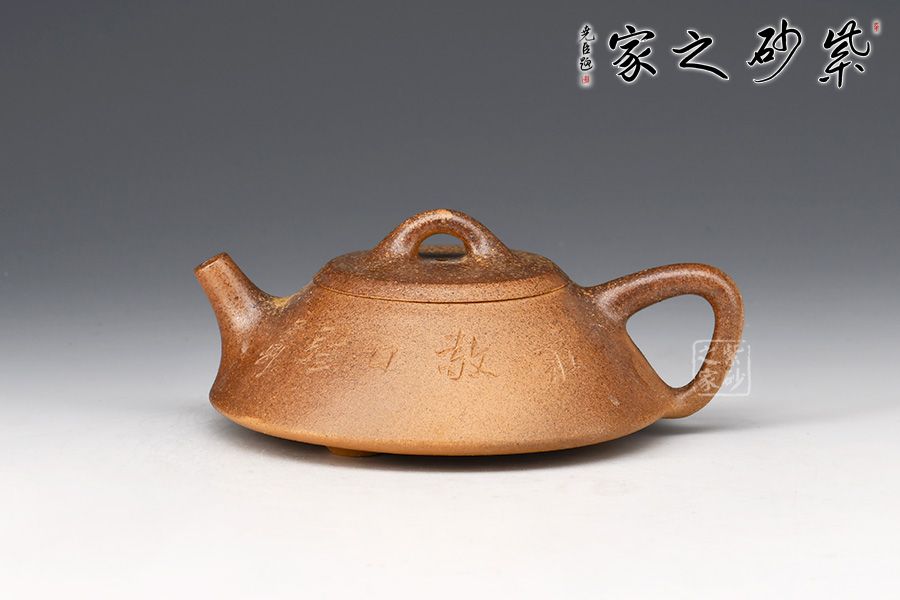 石瓢壺,傳統(tǒng)經(jīng)典器型。此壺器形挺秀,壺鈕為散開的壺型,鈕孔幾乎卵圓形,壓蓋嚴(yán)絲合縫,口蓋略大。直錐嘴,耳形壺把隨身勢,與常見壺不同,三乳足,腹底較為飽滿,小弧面鑲接而成。壺身老師自銘,由陶刻文人詩詞,與主題相呼應(yīng),推薦收藏!