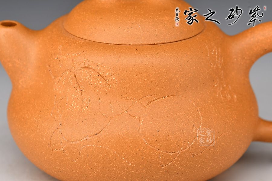 泥性:感甜嫩綿密,質(zhì)堅而溫潤,呈近田黃色調(diào),為江蘇宜興趙莊山系朱泥礦~黃石黃之共生礦,經(jīng)挑揀練製而成,因含鐵量只達6%左右,致陶之后呈“金田黃色”。 紫砂百科全書