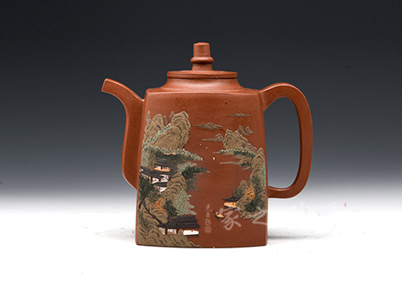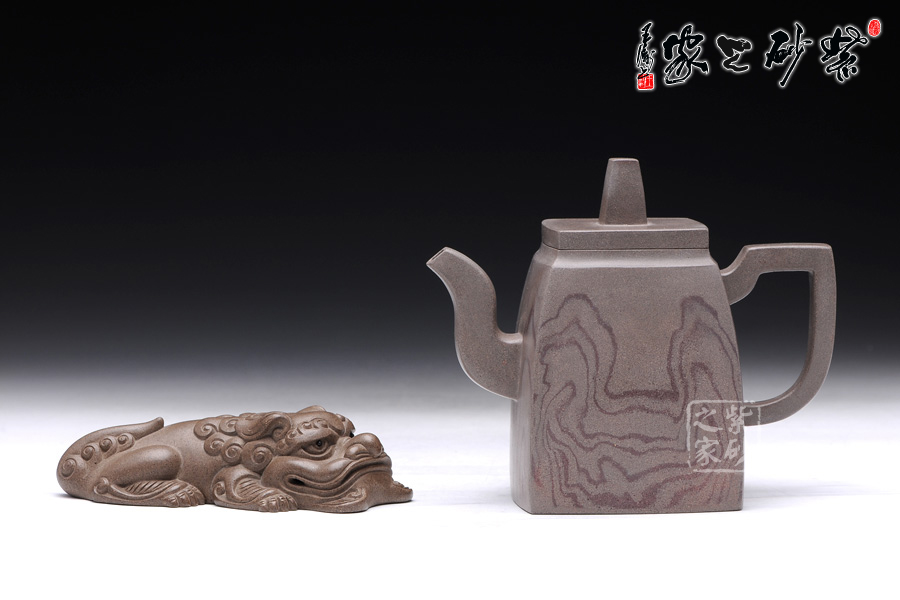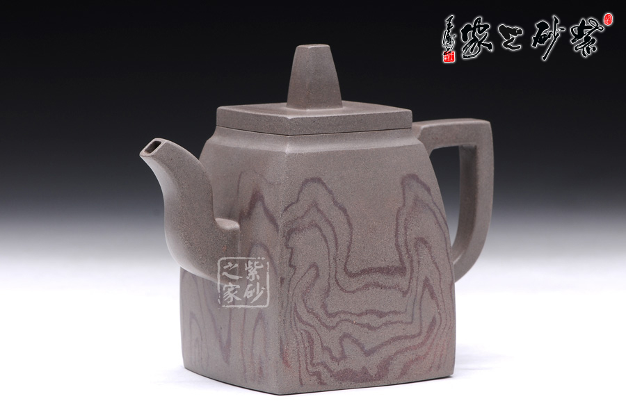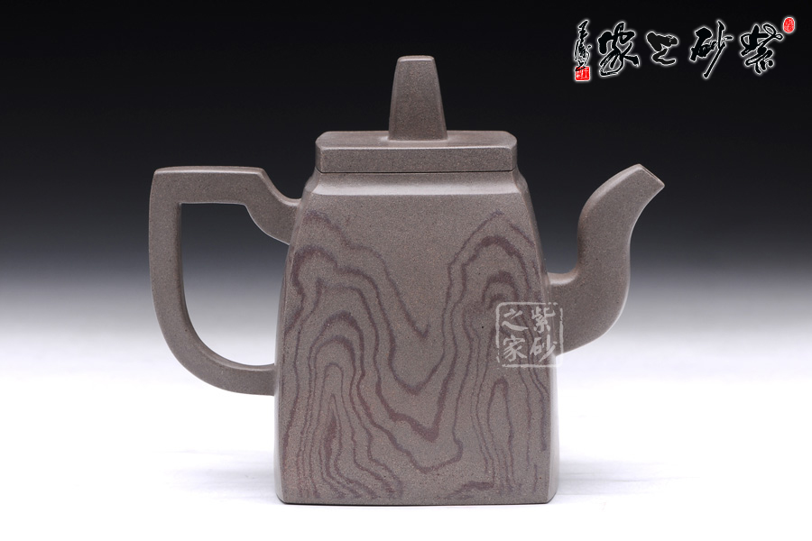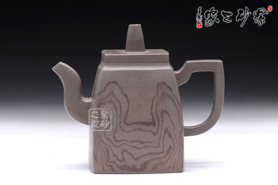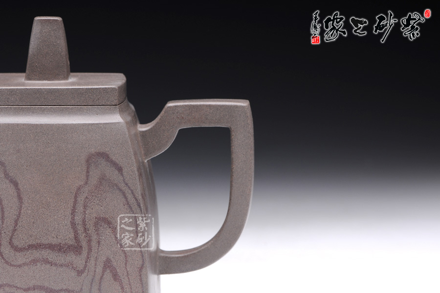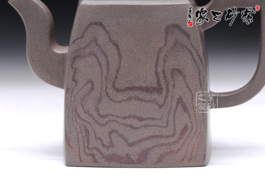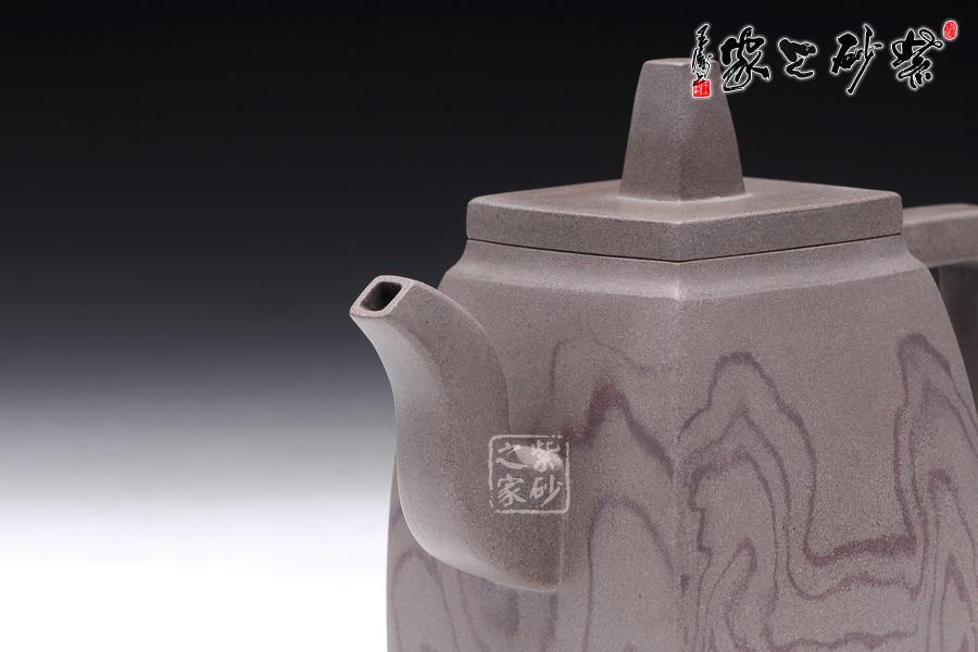 這款韻方壺造型挺括,為比較典型的方壺壺型,壺身的造型與傳統(tǒng)的漢方壺略有相似,器型大氣飽滿,線條流暢豐美,氣勢非凡,令人賞心悅目;而與漢方相比,此壺輪廓格外明利干脆,起伏有致;壺的流、的子、把皆為四方造型,三彎流曲折蜿蜒,如龍蛇飛舞,壺把上方下圓,剛?cè)岵?jì),持握舒適,梯形鈕一柱擎天,直插云霄,氣勢磅礴;精品青灰泥制作而成,淡雅而不失古樸風(fēng)味,壺身運(yùn)用了絞泥的工藝手法,如云蒸霧繞一般徇麗多彩;加之曲線與直線的完美結(jié) 合,作品方中見圓,圓中有方,實為佳作也,品茶鑒賞之何等的快哉。