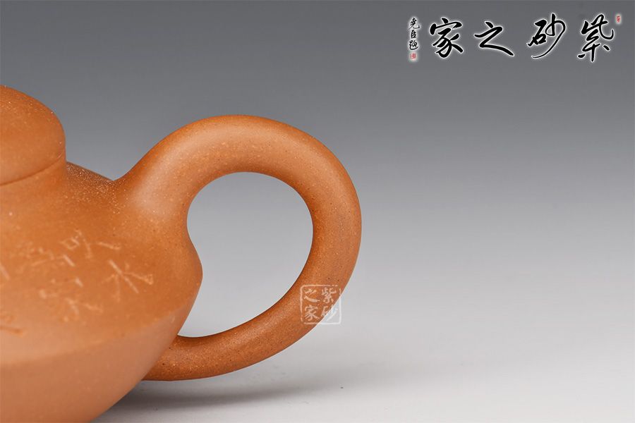 此合歡壺造型美觀,越是賞玩越覺余味無窮,展示了非常高雅的品味。上下拼接的壺身對仗工整,圓潤中可見純熟技藝。耳形把和彎流壺嘴左右對應(yīng),張力十足,品玩此壺,方知何為經(jīng)典之作。