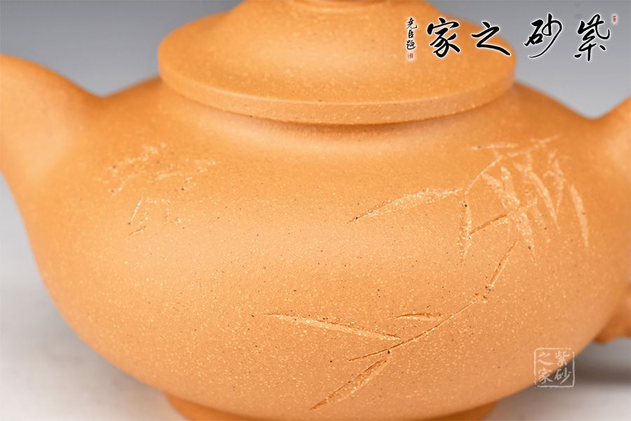 泥性:感甜嫩綿密,質(zhì)堅(jiān)而溫潤(rùn),呈近田黃色調(diào),為江蘇宜興趙莊山系朱泥礦~黃石黃之共生礦,經(jīng)挑揀練製而成,因含鐵量只達(dá)6%左右,致陶之后呈“金田黃色”。 紫砂百科全書