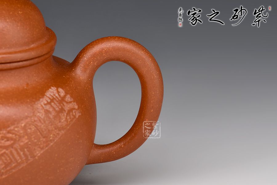 此壺為經(jīng)典掇球壺,整壺古樸大方,鈕、蓋、身猶如三個圓球疊落而成,壺頸較長,立體空間感極好,壺蓋的卷沿古樸厚重,壓蓋有氣勢。一彎流昂揚,耳形把精巧。整體比例勻稱,造型大氣,周正精美,渾樸豐潤,是一把高性價比的殺茶利器,值得把玩。