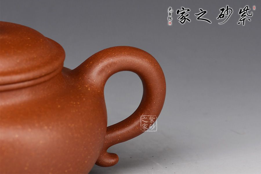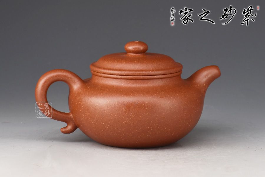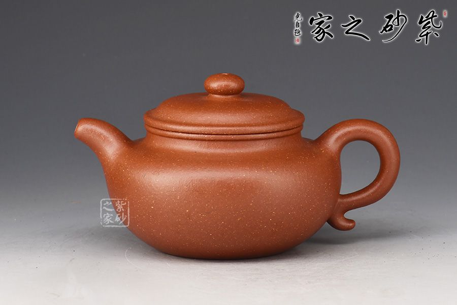 色澤古樸,砂感隱現(xiàn),特別適宜于賞玩的壺。