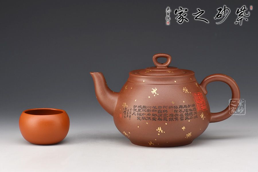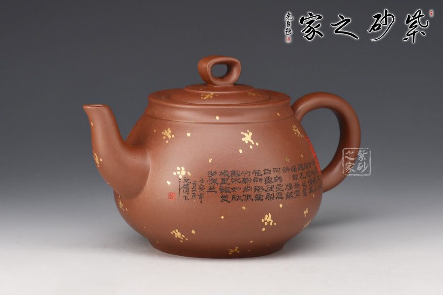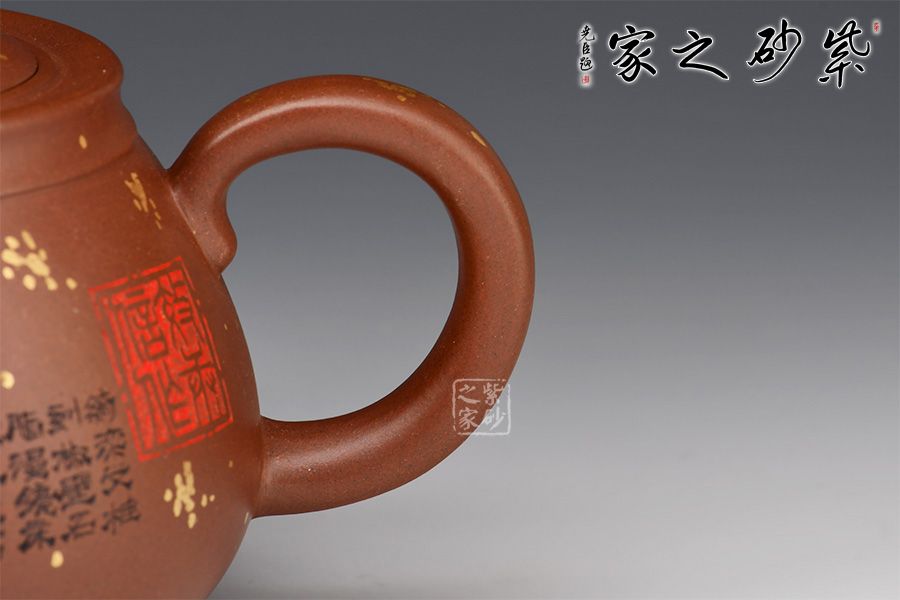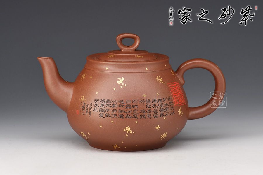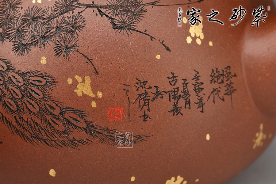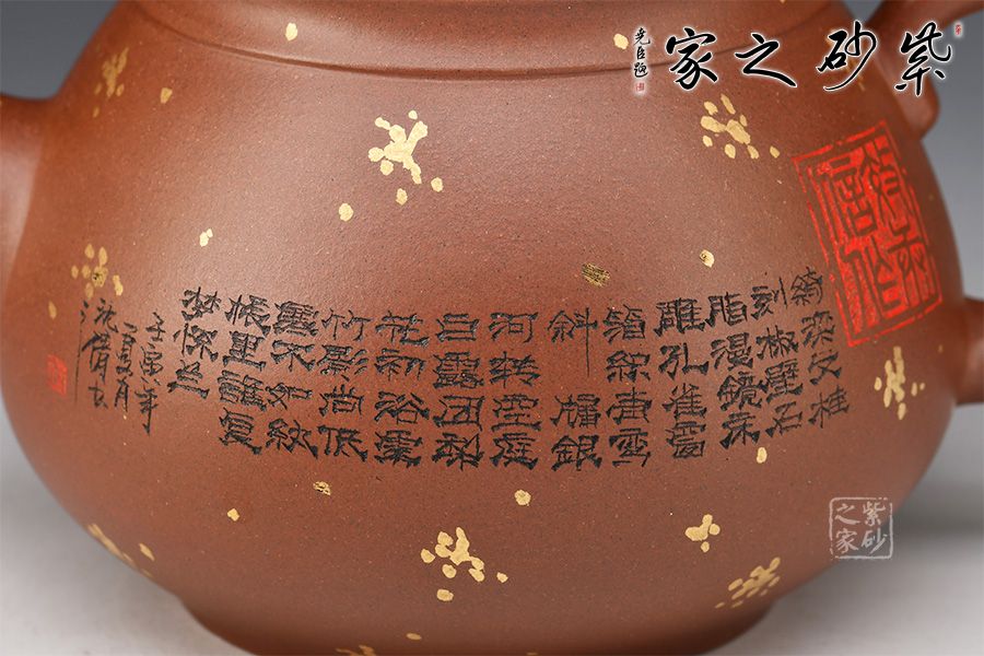 此壺《思源》壺,線條流暢,圓身筒,造型優(yōu)美,嵌蓋圓環(huán)鈕,流把左右舒展平衡,韻味很妙。壺身沈倩老師陶刻詩詞,文人氣息十足。再加以灑金點綴,端莊大氣,推薦收藏。