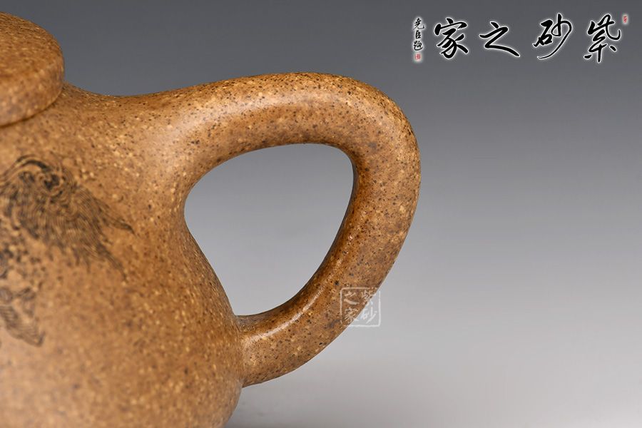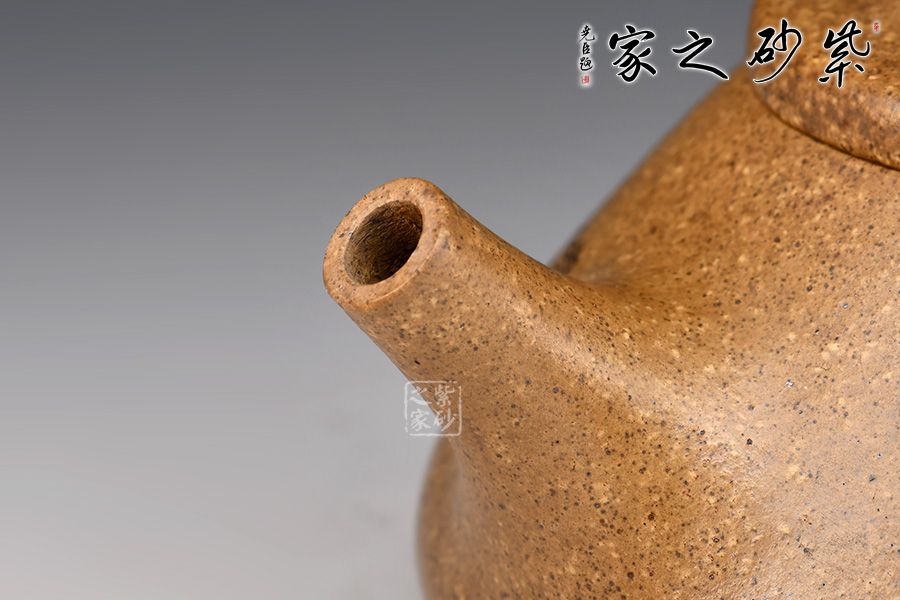 石瓢壺是紫砂器型中最經典的壺型之一,吳亞維老師的這把石瓢比例勻稱,無論是橋鈕、壓蓋,還是直流、三角把,抑或是人字形壺身,都布局精巧,恰到好處。