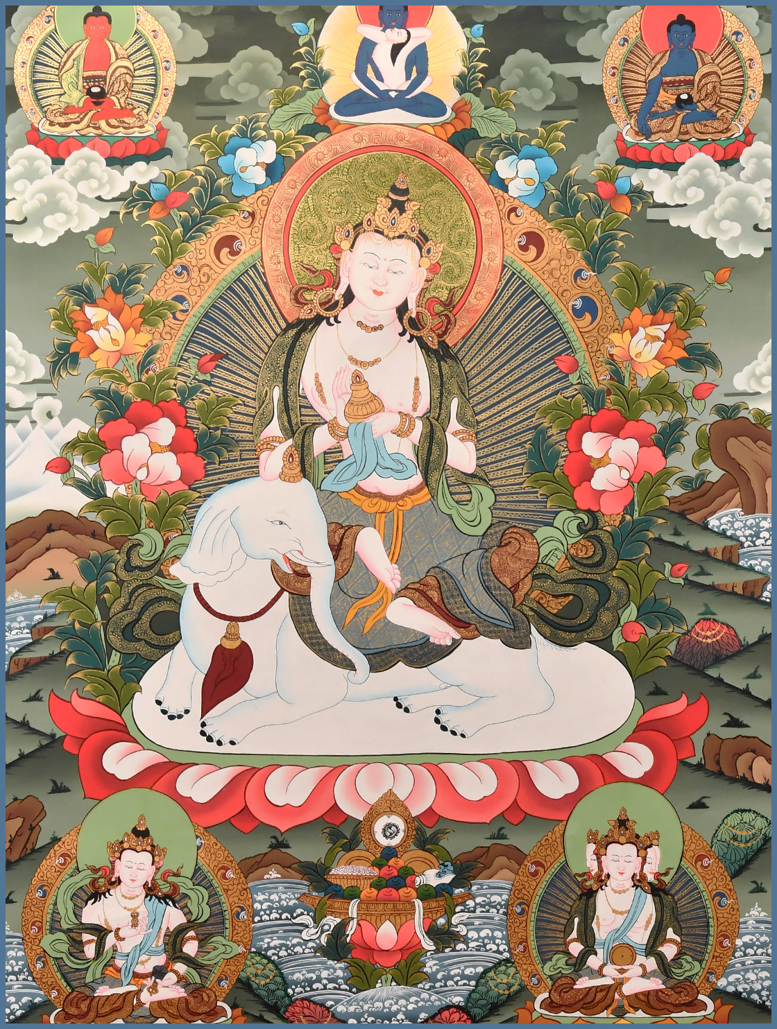 普賢菩薩是中國佛教的四大菩薩之一,象征理德、行德的菩薩,代表實踐,把孝敬、慈悲、智慧,應用、落實在日常生活當中,同文殊菩薩的智德、正德相對應。具足一切無量行顧,受菩薩護佑,凡行必成可求愿望能順利實現,計劃得到更好執行,身無疲憊地去行去做事,德行天下、學佛有成、愿行廣大、功德圓滿。