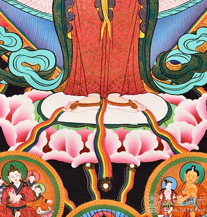| 唐卡是歷史的瑰寶,現已被例入國家非物質文化遺產名錄,得到了高度的重視和保護。同時由于顏料的珍稀、繪制周期長、工藝復雜大大增強了其珍藏價值。一幅好的作品可遇不可求,近年來唐卡已成為收藏界炙手可熱的藏品。 | 唐卡的形式便于攜帶,其內容體現了藏傳佛教的莊重、神圣、華貴,被稱為“移動的佛像”。同時也是修行者積累善業,追尋心靈的平靜與安寧的一個過程。 | 唐卡的內容包羅萬象,它以圖像的方式承載著藏族文化精髓,是藏族智慧的結晶,廣泛傳播了藏地的文化、歷史和宗教理論。 | 唐卡絢麗的色彩、流暢的線條、嚴謹的結構,都充滿著濃郁的高原和游牧民族風情,無疑是難得的藝術珍品。值得一提的是唐卡繪制顏料全部為天然礦物顏料,畫面效果艷麗,可以保存千年而不變色。 |