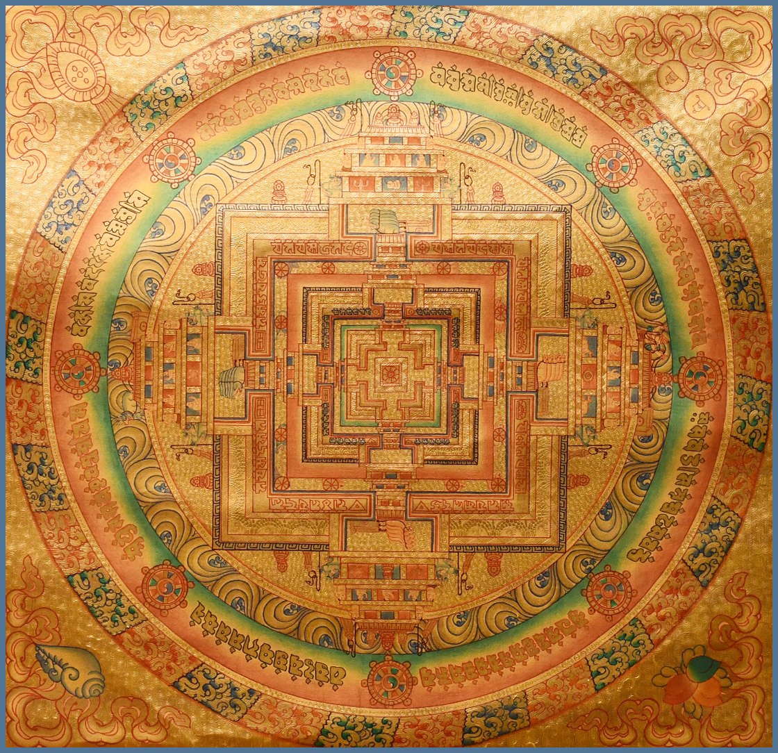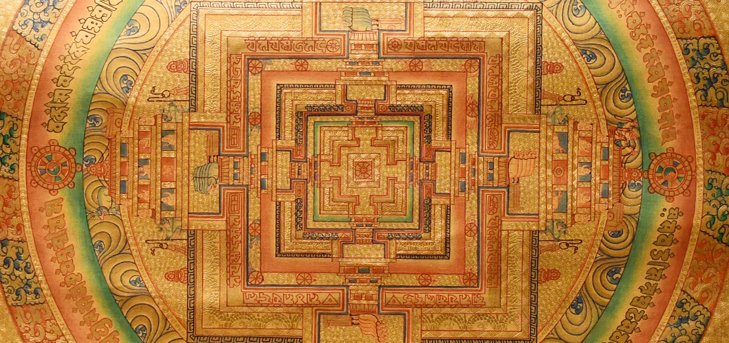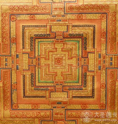 由于曼荼羅是真理之表征,猶如圓輪一般圓滿無缺,因此也有將之譯為“圓輪具足”。另外,由于曼荼羅也被認為有“證悟的場所”、“道場”的意思,而道場是設壇以供如來、菩薩聚集的場所,因此,曼荼羅又有“壇”、“集合”的意義產(chǎn)生。因此,聚集佛菩薩的圣像于一壇,或描繪諸尊于一處者,都可以稱之為曼荼羅。